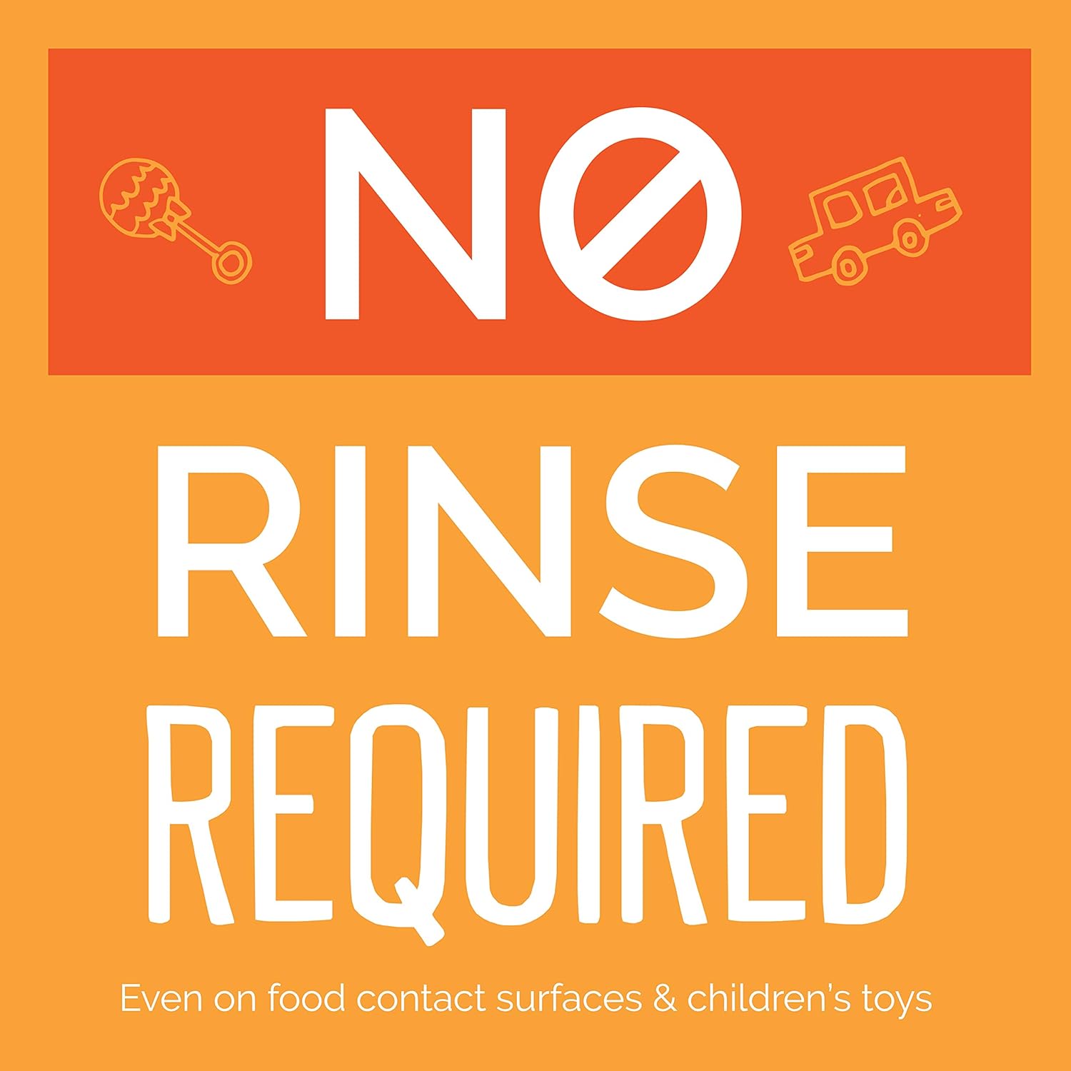 - Disinfectant cleaner with no rinse required, even on food contact surfaces and children’s toys