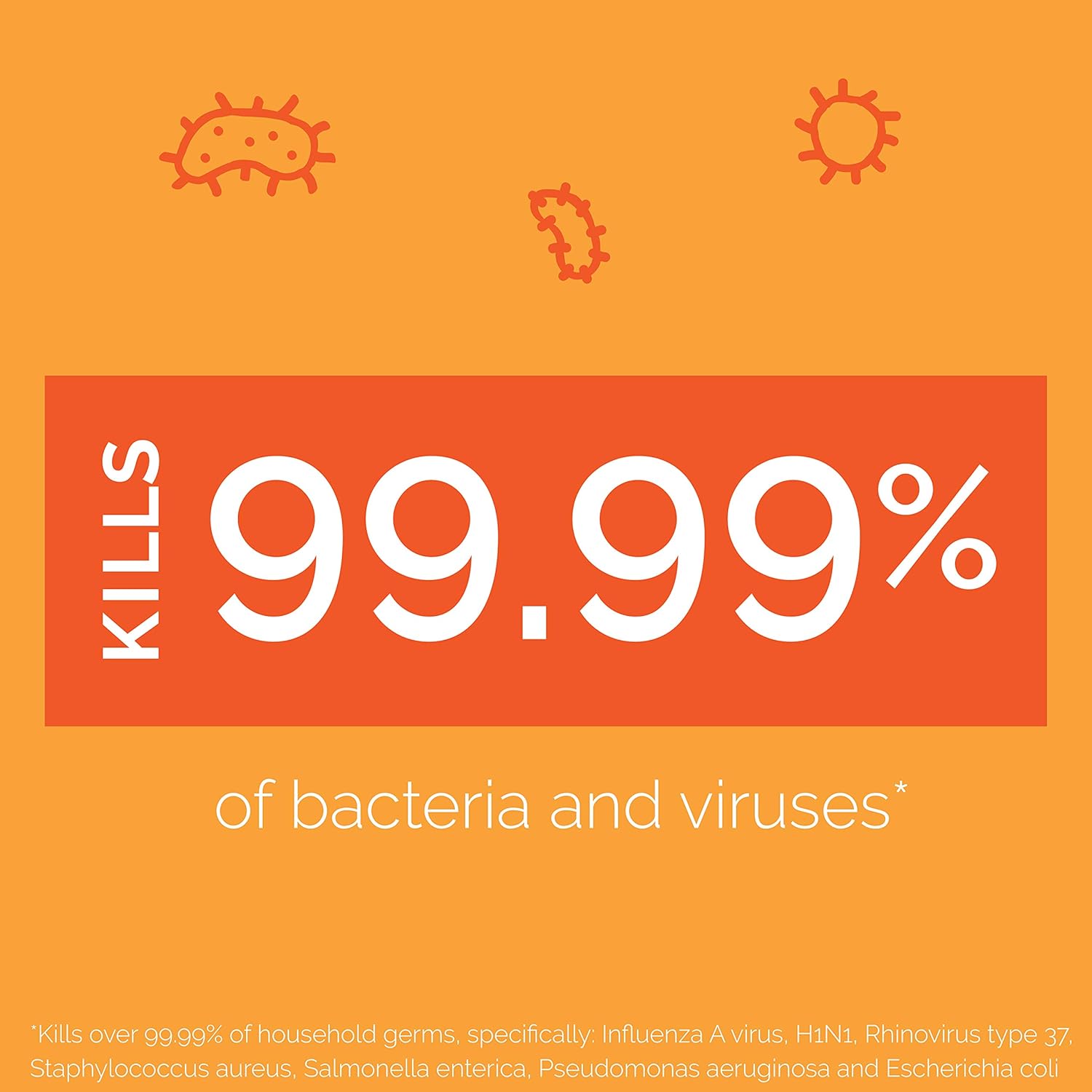 - A disinfectant that kills 99.99% of bacteria and viruses*