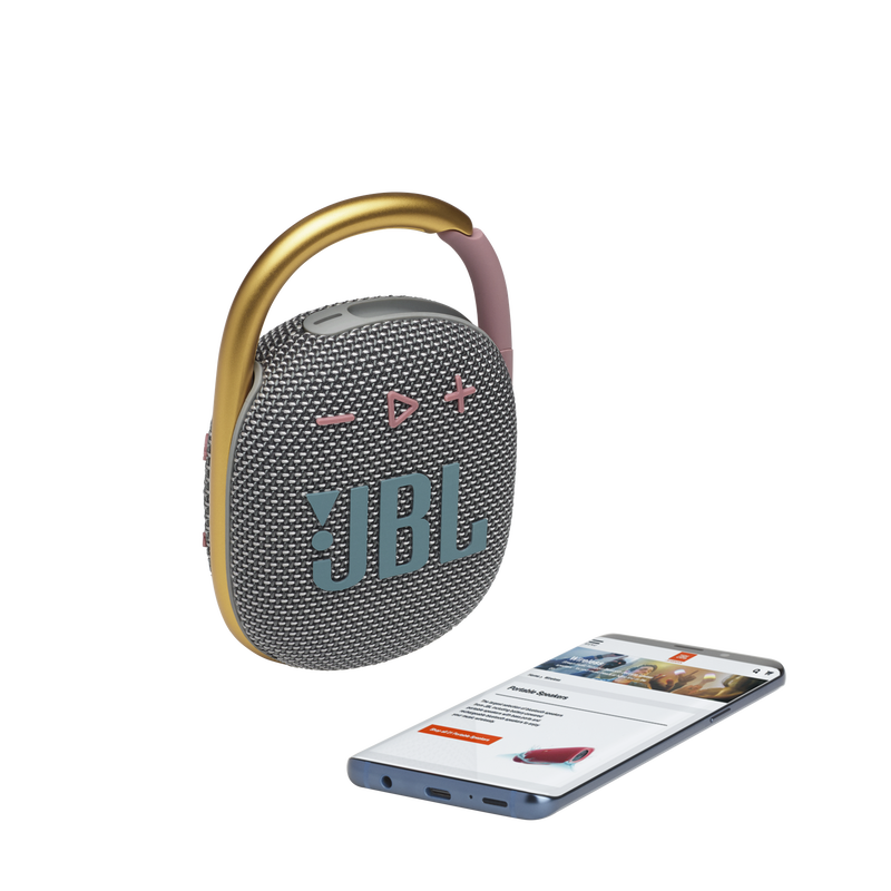 JBL Clip 4's ultra-portable design goes great with the latest styles, and its colorful fabrics and expressive details make it look as great as it sounds.
