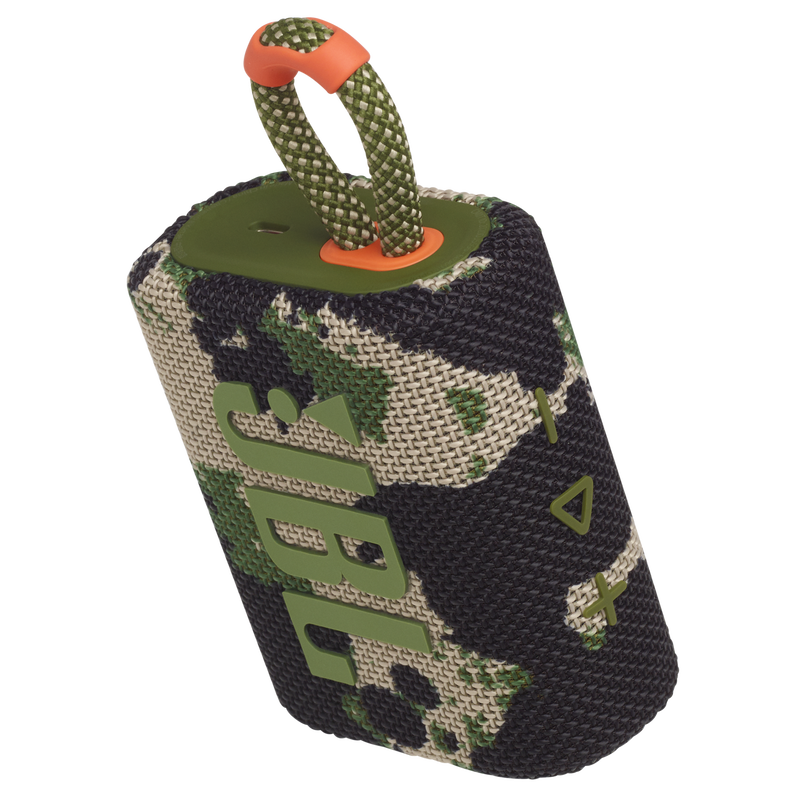 JBL Go 3's ultra-portable design goes great with the latest styles, and its colorful fabrics and expressive details make it look as great as it sounds.