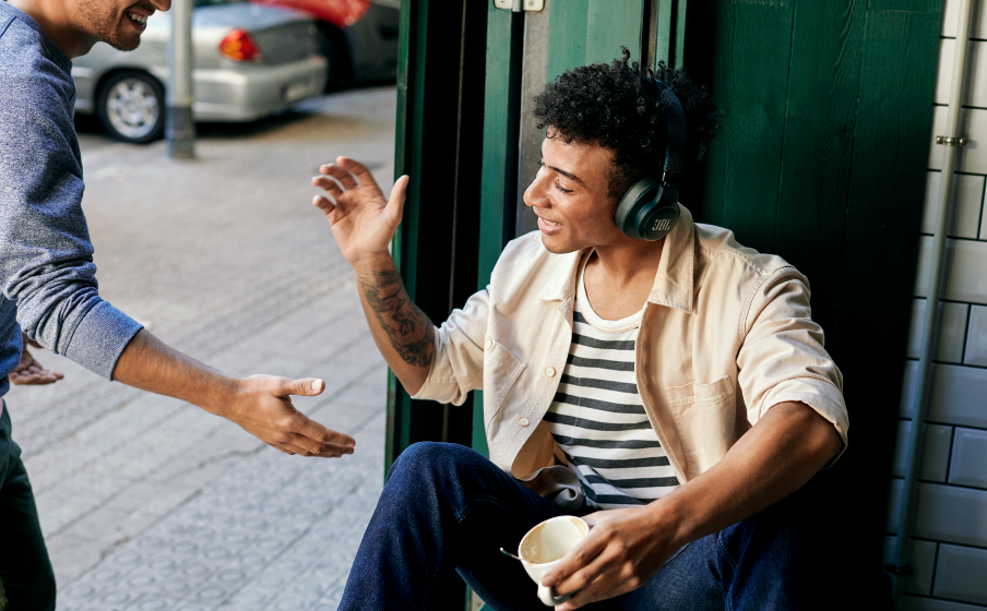 Don’t let the music stop! Stay in touch with your surroundings while listening to your tunes. A touch of the Ambient Aware button increases the ambient sound and lets you hear what’s happening around you. The TalkThru mode drops the music level down, allowing you to talk to your friends without removing your headphones.