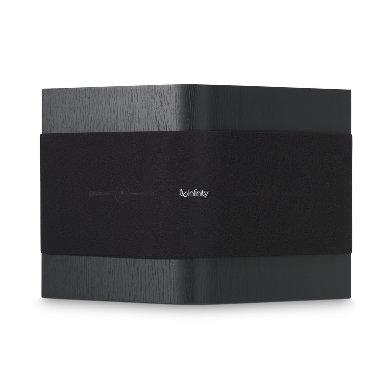 Infinity’s engineers have developed and patented Hemispherical Soundfield Technology (HST) to eliminate the detrimental acoustical reflections typically associated with wall-mounting loudspeakers. With the HST design, a rear-facing woofer is scientifically positioned at a given distance from the wall while companion dual highfrequency drivers with advanced waveguides are each placed on either side of the angled front panels. This combination of driver positioning and waveguide pattern control provides remarkably balanced coverage across a 180-degree hemispherical listening area without the typical “hot and cold” frequency response inefficiencies found with mounting traditional loudspeakers on the wall. The end result is a loudspeaker with extremely flexible on-wall placement capability while maintaining consistent performance over a wide area even when listening from far off to one side.