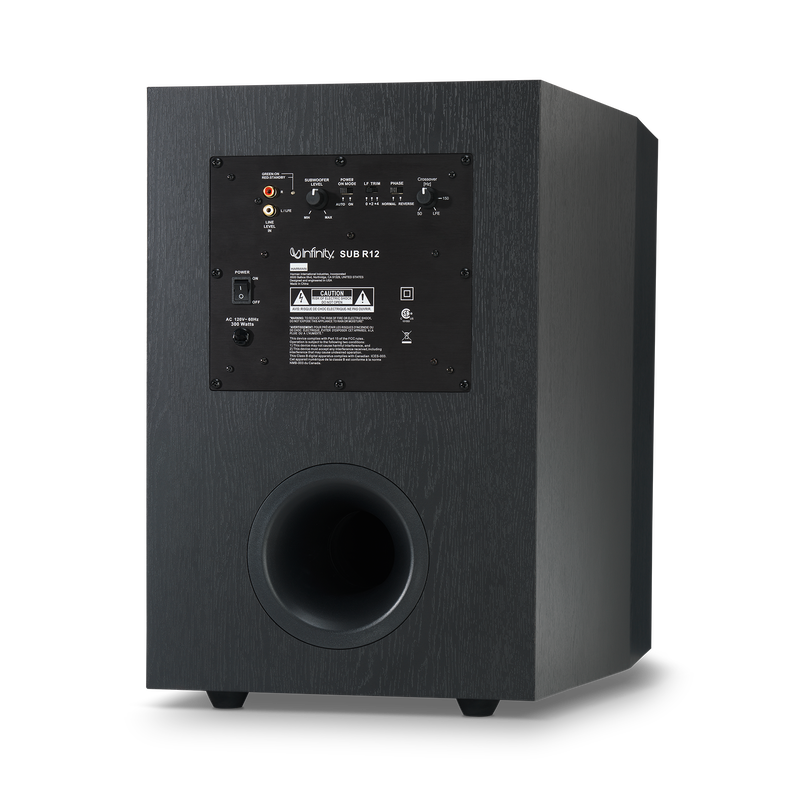 Your new point of reference for high-quality sound As the larger powered subwoofer model in the Reference Series, the SUB R12 adds powerful bass to any music or movie entertainment system. The heart of this subwoofer is the 12" (300mm) fiber-composite driver mated to the 300 Watt (600W peak power) high-power digital amplifier. The solid 0.75" (19mm) construction of the tuned-port subwoofer cabinet with its internal edgeto-edge windowpane bracing provides a firm foundation to reinforce the type of tight, punchy and dynamic deep bass required for high-resolution digital surround and modern popular music. This combination of unyielding structure, high-output digital power and robust driver provides powerful, deep bass response that will make your music and movies come alive. The SUB R12’s slender design and elegant details provide a rich appearance that blends well with any décor.