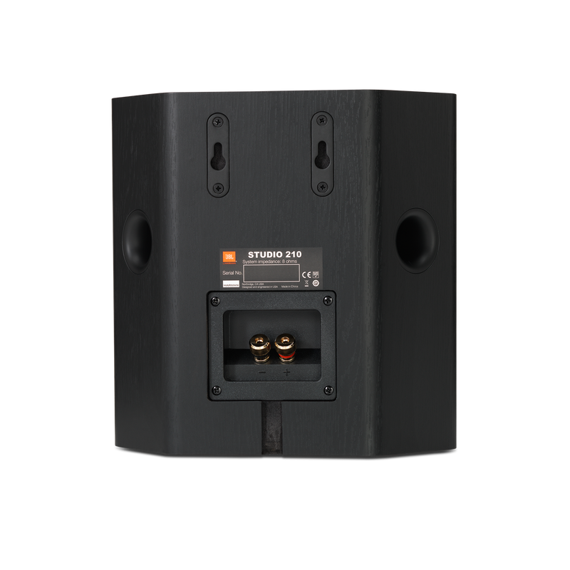 The sound of timeless. The technology of now. If perfection ever rests, no one ever broke the news at JBL. As part of the new 10-piece JBL Studio 2 loudspeaker series, we built the Studio 210 surround speakers to speak the languages of both legacy sound and forward-thinking technology. Tested relentlessly in the world’s finest sound research lab – our own – as well as pitted against competitors in real world comparative listening studies, we’ve created a surround loudspeaker that leaves all others behind. We engineered a 4” PolyPlas midrange speaker and side-firing Slipstream bass ports that bathe listeners in rich audio clarity that’s perfectly timed with tight, accurate bass. We might have stopped here – but that’s not how we roll. We added a 1” CMMD® Lite high-frequency driver to ensure low-distortion and a truly generous sound spectrum, and incorporated a High Definition Imaging (HDI) waveguide design to allow for pinpoint sound imaging and cinema-grade balance. Then we finished it all off with seductive touches like gloss black paneling, soft rounded edges, and your choice of either Black or Espresso woodgrain finish. We combined the power and precision of high-tech audio with the sleek urbanity of “it-factor” design. Put another way, we ran wild with sound and vision. For those able to hear the truth, we’re confident you’ll hear it at first listen.