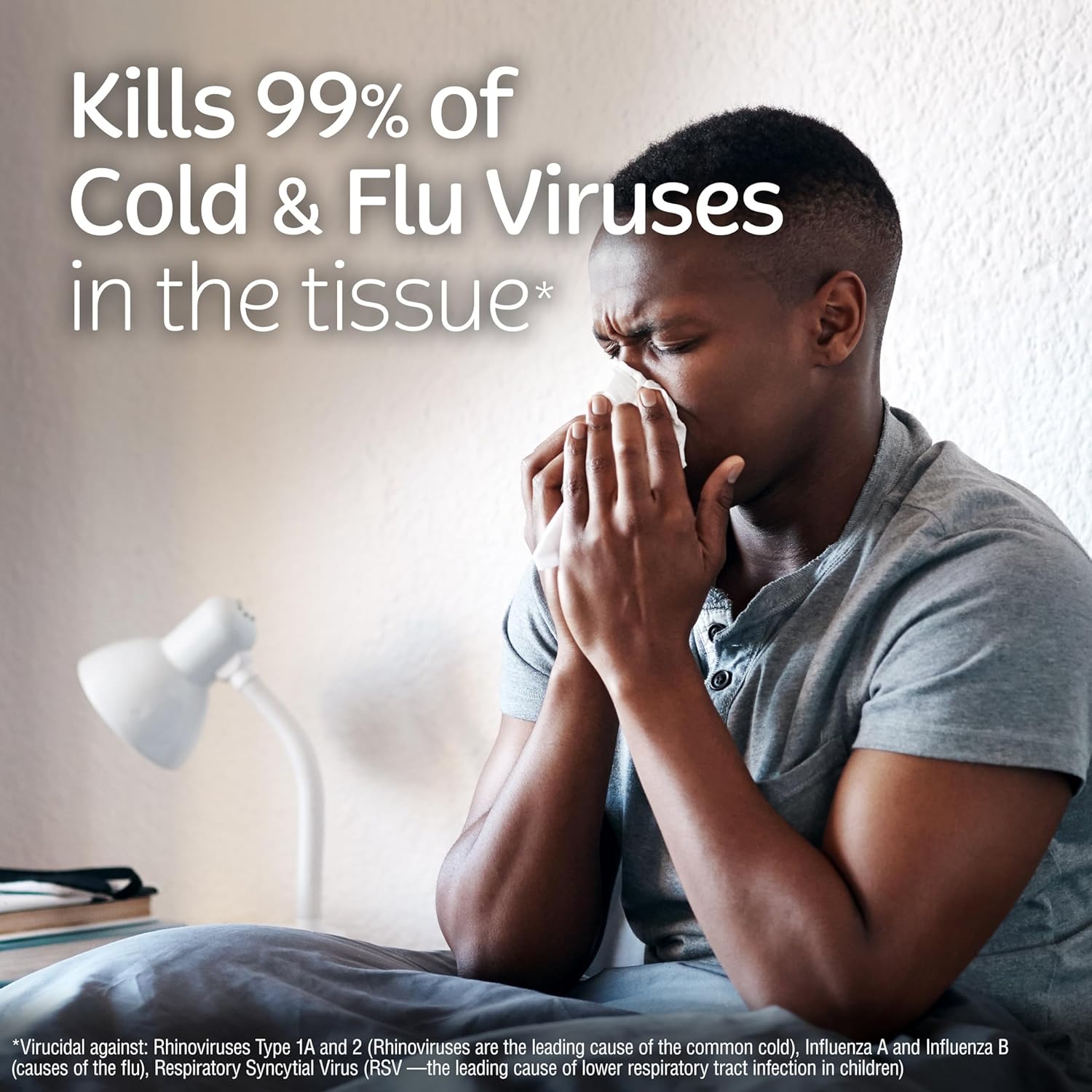 - ANTI-VIRAL FACIAL TISSUES: Kleenex Anti-Viral tissue has a specially treated middle layer that wipes out cold and flu viruses in the tissue. When moisture hits the middle layer, the tissue will kill 99.9% of the viruses in the tissue.