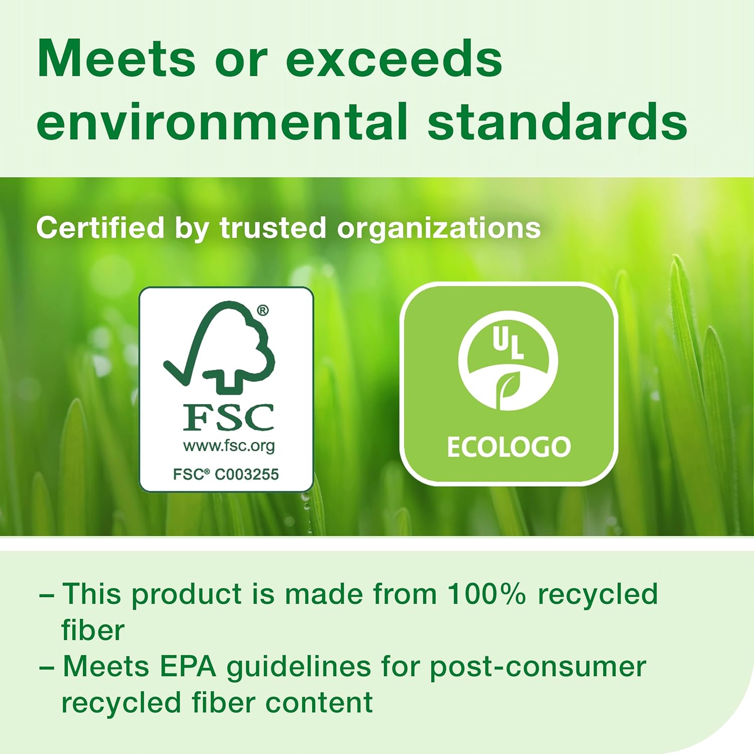 • This toilet paper is made from 100% recycled fiber and is EcoLogo-certified and EPA-compliant.