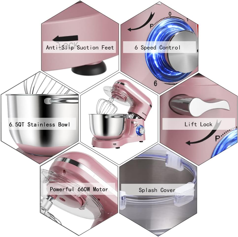 • Aucma Stand Mixer,6.5-QT 660W 6-Speed Tilt-Head Food Mixer, Kitchen Electric Mixer with Dough Hook, Wire Whip & Beater (6.5QT, Black)