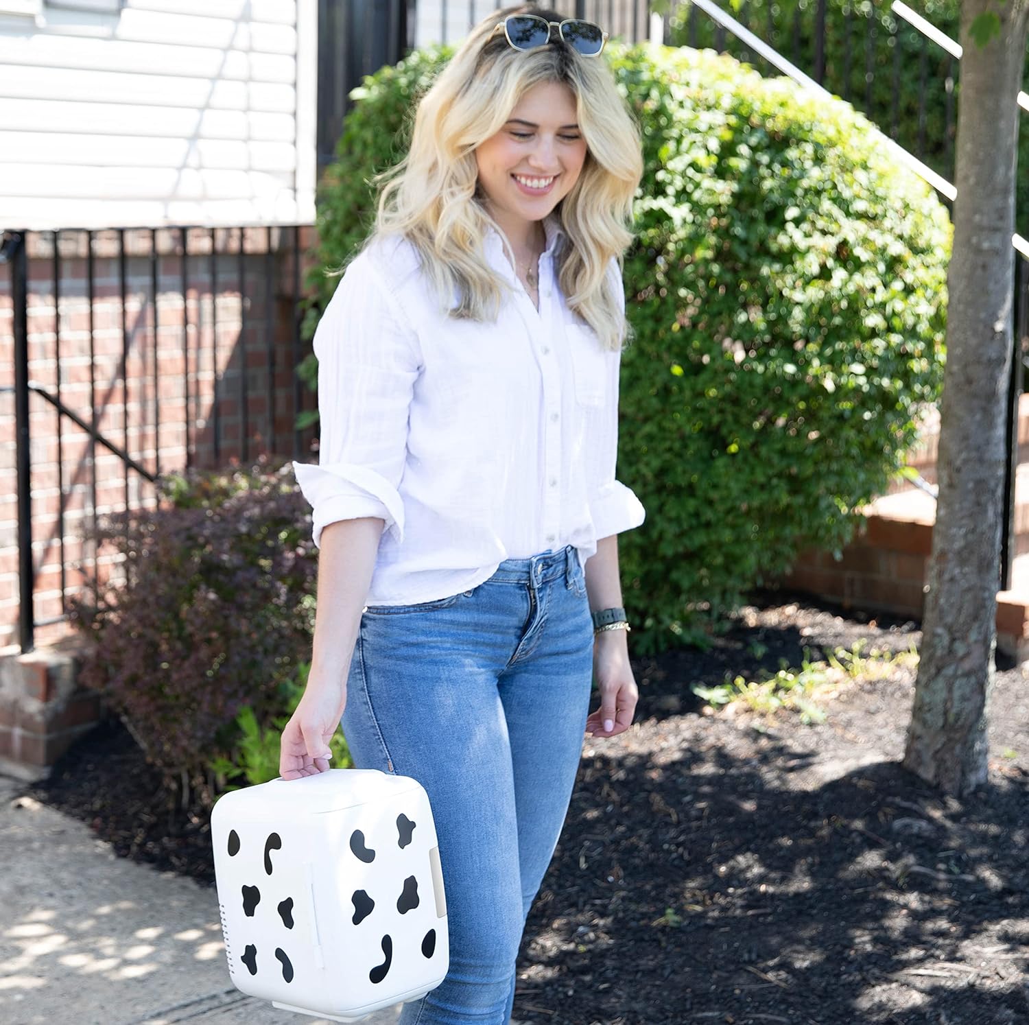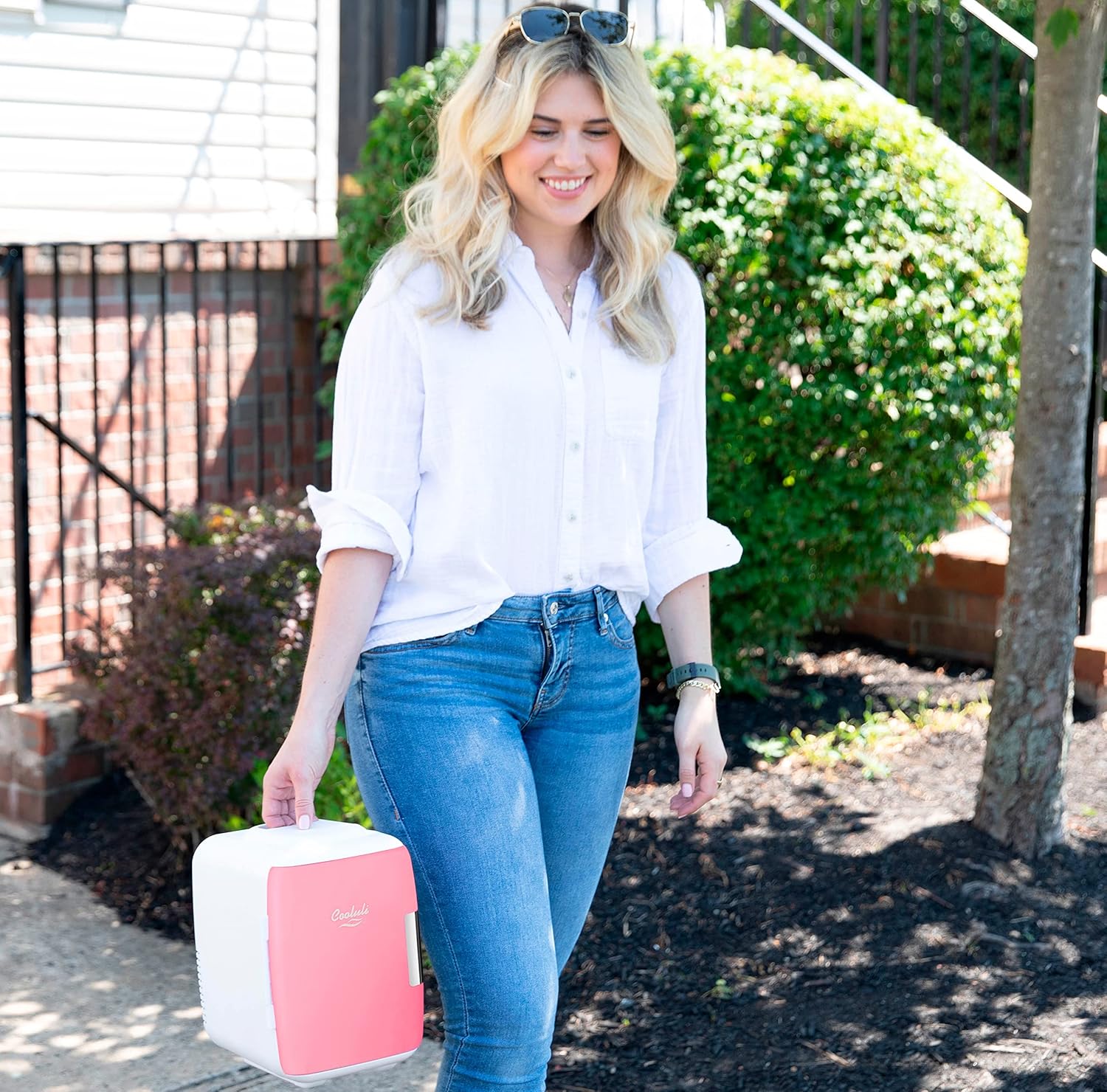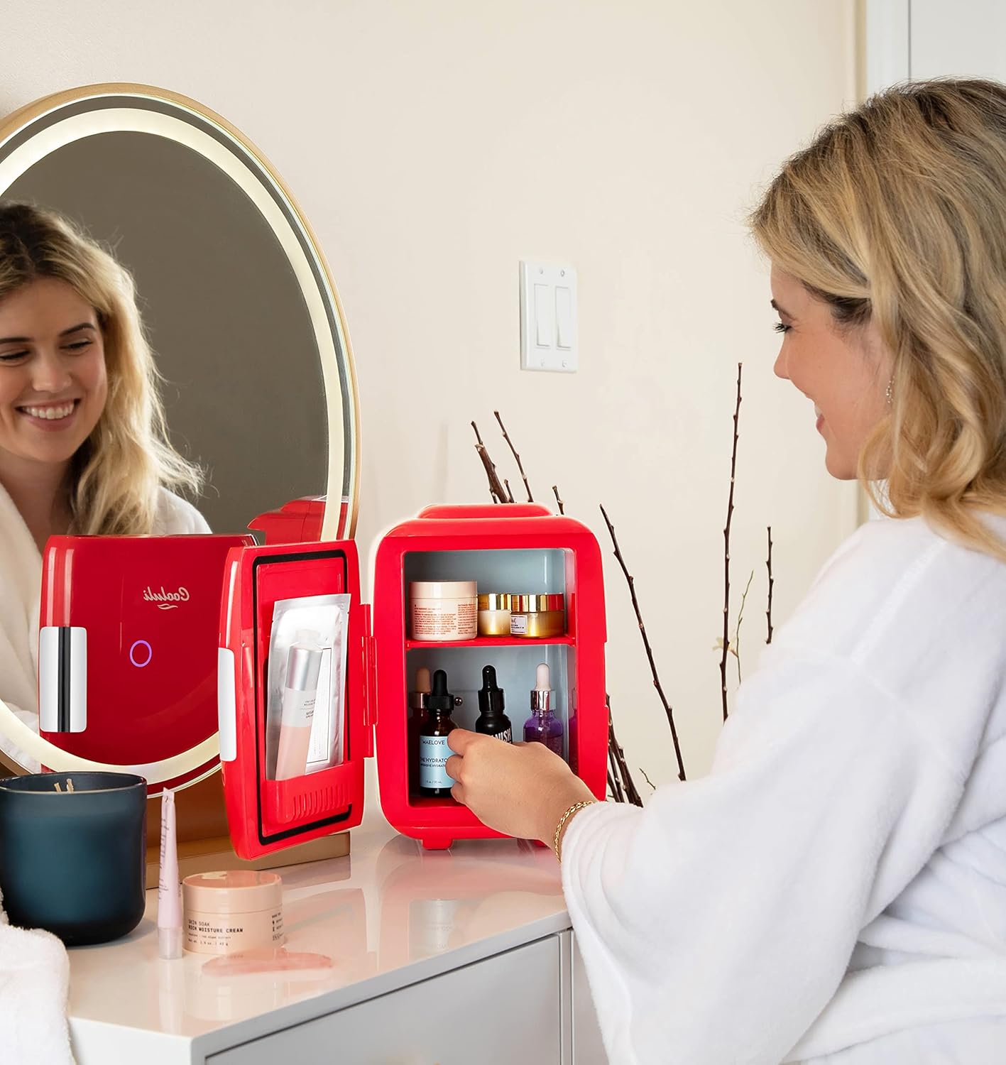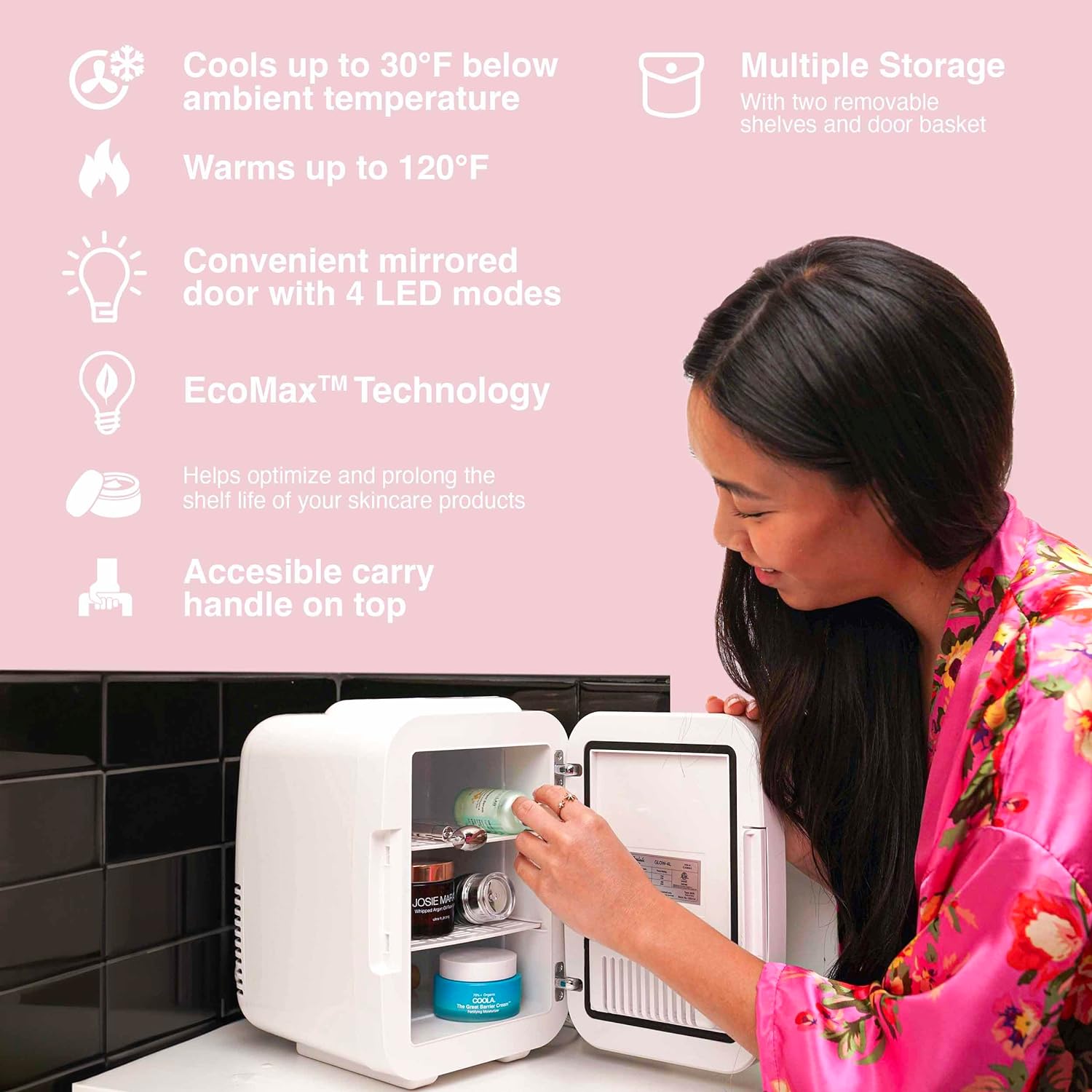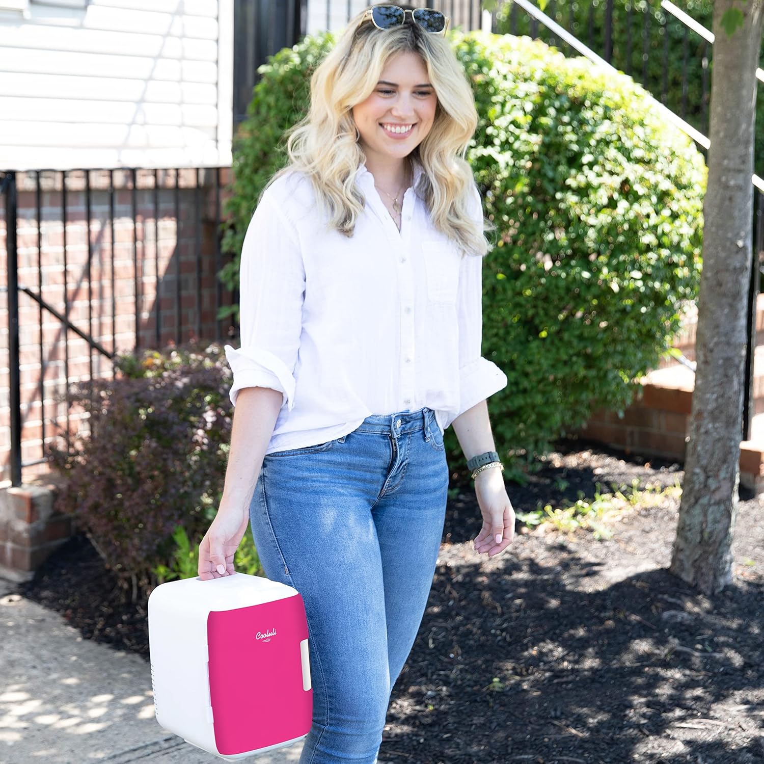 - SLEEK, DURABLE DESIGN: The Cooler & Warmer has a beautiful matte finish on the outside. Sleek enough to leave at home or in the office – fits perfectly on your desk. Simply wipe it down to clean the inside and outside. The lightweight, sturdy polypropylene (PP) plastic design and magnetic self-lock latching door along with included DC adapter makes the Cooler/Warmer portable. The carrying handle on top makes transporting the appliance even more convenient.