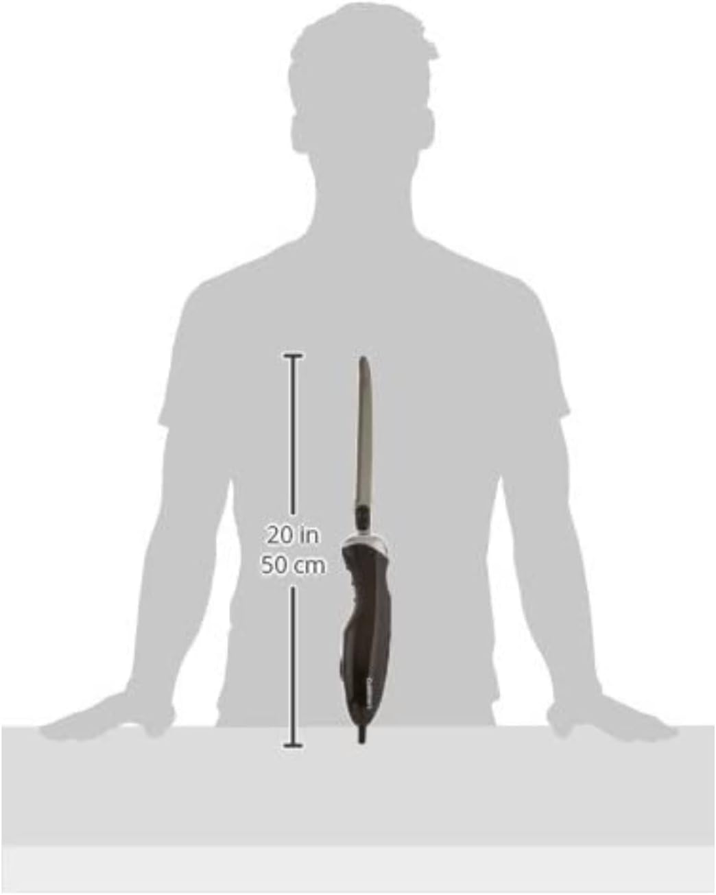 - INCLUDED: Blade, power handle, carving/serving fork, bamboo cutting board and storage tray– power handle, blade, and fork sit in storage tray on top of cutting board
