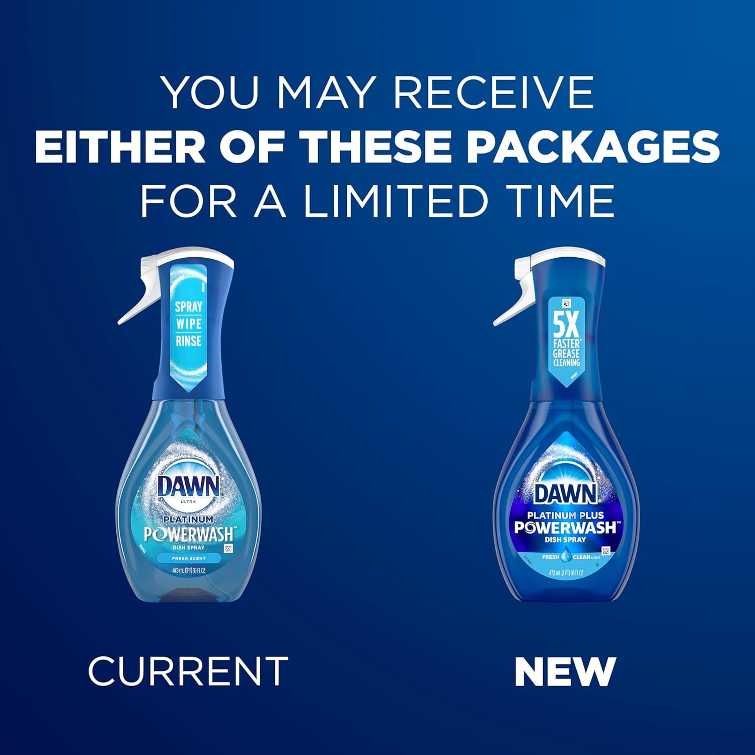 - For heavily soiled dishes allow the suds to sit for a few minutes to allow the Dawn Platinum Powerwash Spray to break down and lift away soils