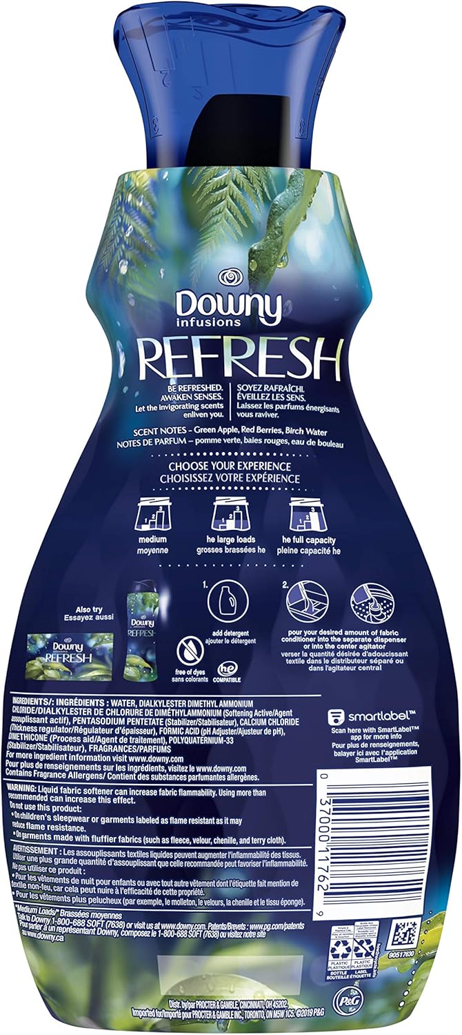 Discover the soothing scents of lavender and vanilla bean with Downy Infusions CALM Liquid Fabric Softener. Downy Infusions Liquid Fabric Softener gives your laundry long-lasting fresh scents* and irresistible softness that will leave your laundry smelling as good as it feels. Just measure and pour into your designated softener dispenser, Downy Ball, or directly into the rinse water for an incredibly calm aroma. Safe for all washing machines (including HE machines) and is a great companion to your laundry detergent. Scent up and reduce static cling with Downy Infusions Dryer sheets and In-Wash Laundry Scent Booster Beads for amazingly soft and fresh loads.*Vs. leading liquid laundry detergent from wash until wear.
