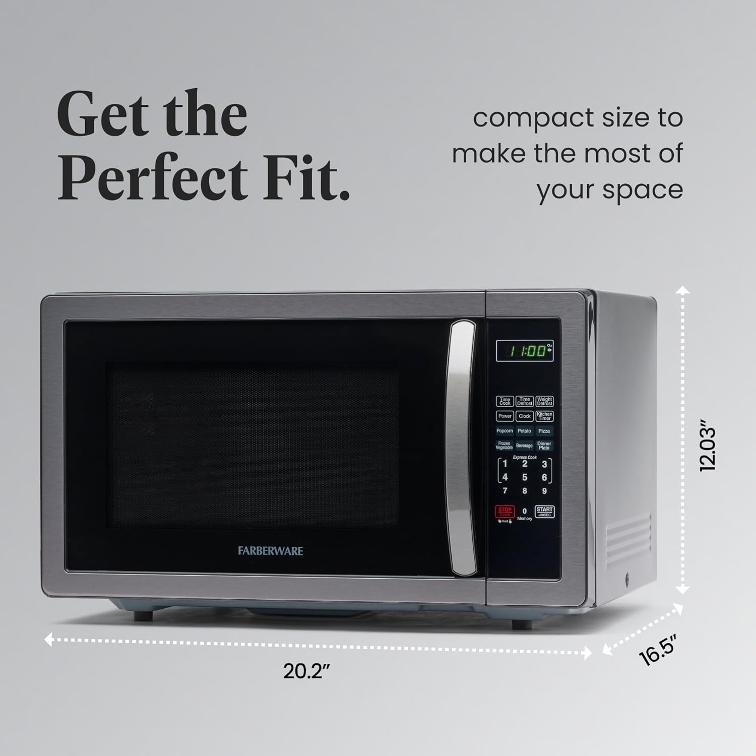 - PERFECT SIZE: Measuring 1.1 cu ft, this microwave is the ideal small-space solution that offers full-sized cooking in a compact space. It features an easy-to-clean interior and exterior and is perfect for the home or office.