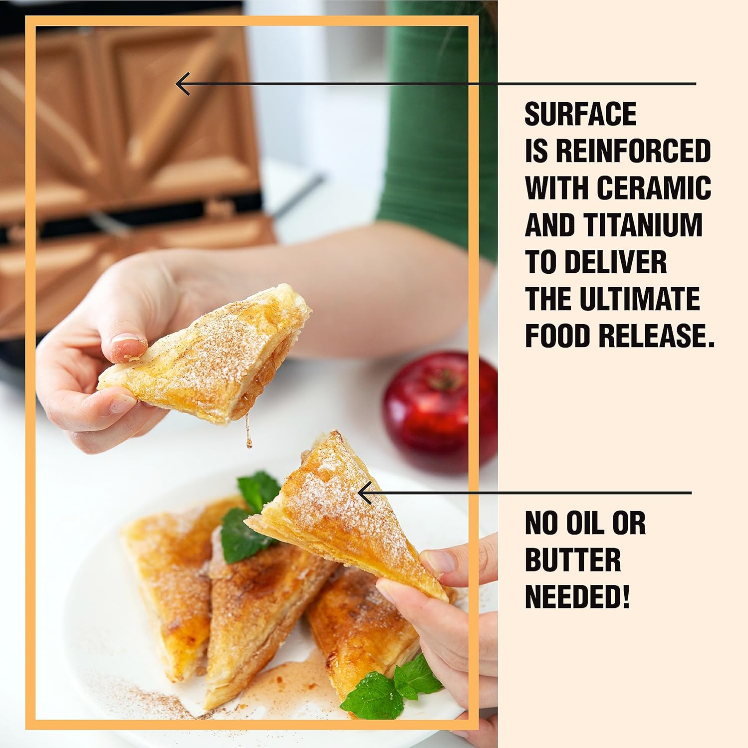 - Perfect Sandwiches Every Time: Toasts the bread and seals with a diagonal indentation for no fuss slicing in half