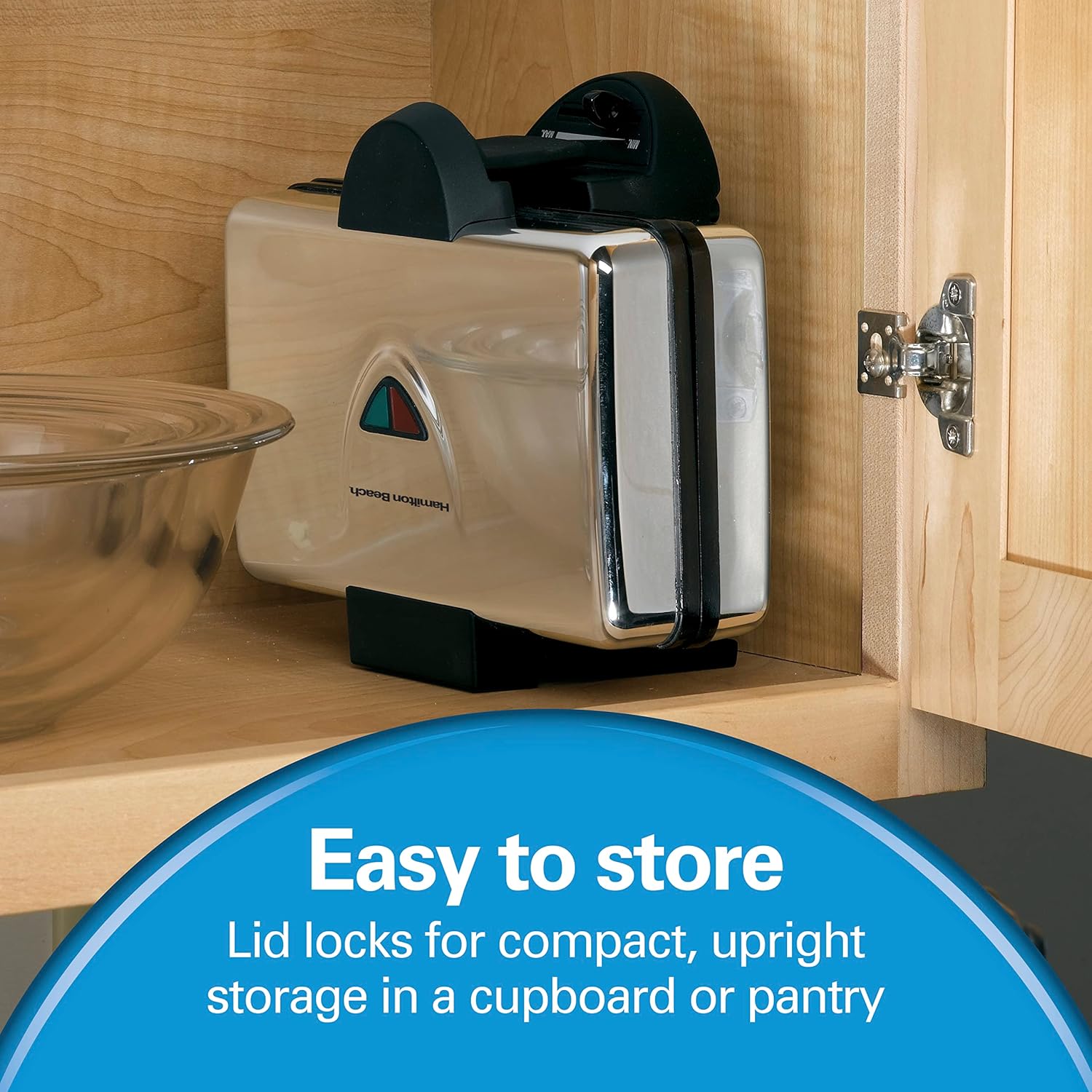 - Easy to Store: The lid locks for compact, upright storage of waffle maker in a cupboard or pantry