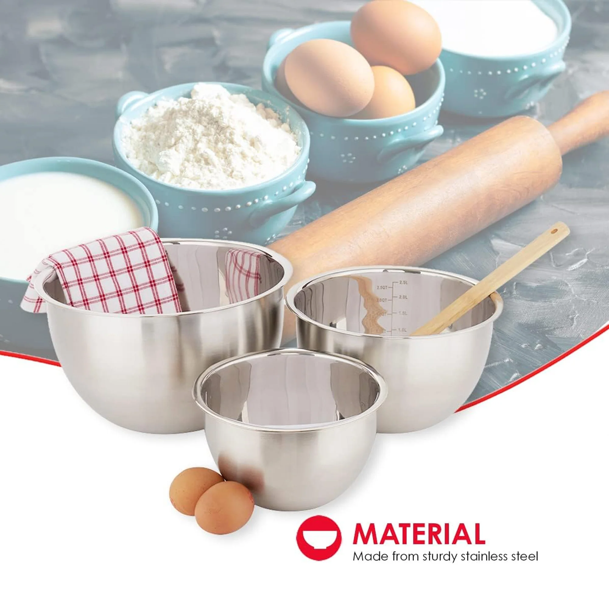 Home Basics 3 Piece Stainless Steel Nesting Mixing Bowls