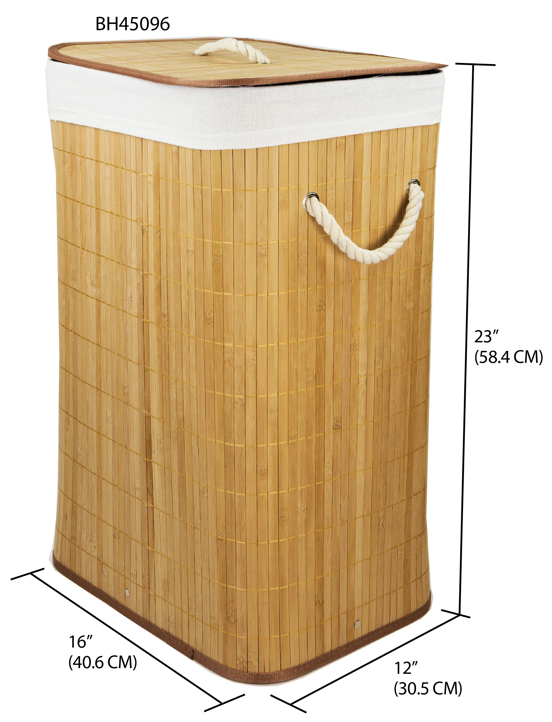• Home Basics Rectangular Bamboo Hamper, Natural, 16x12x23 Inches