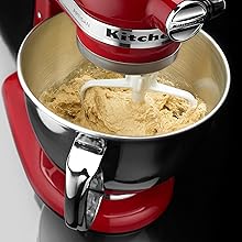 - 4.5 Quart Stainless Steel Bowl to mix up to 8 dozen cookies* in a single batch. Dishwasher safe. *Using the flat beater; 28g dough each