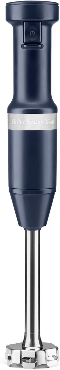 Designed for the perfect puree. This KitchenAid® Variable Speed Corded Hand Blender features an 8" removable blending arm with 4-point stainless steel blade to blend everything from smoothies, to milk shakes, soups, sauces and so much more. It is easy to use with the variable speed trigger switch and includes a US patented removal pan guard to help protect your cookware. The 3-Cup BPA-Free Blending Jar with lid is great for individual blending jobs, and can be used to serve direct from or to store your blended creation for a later use.