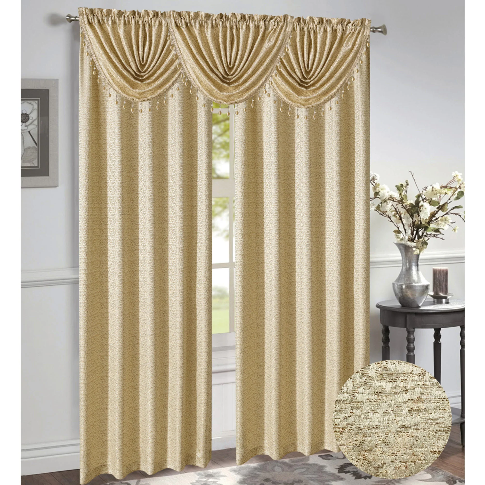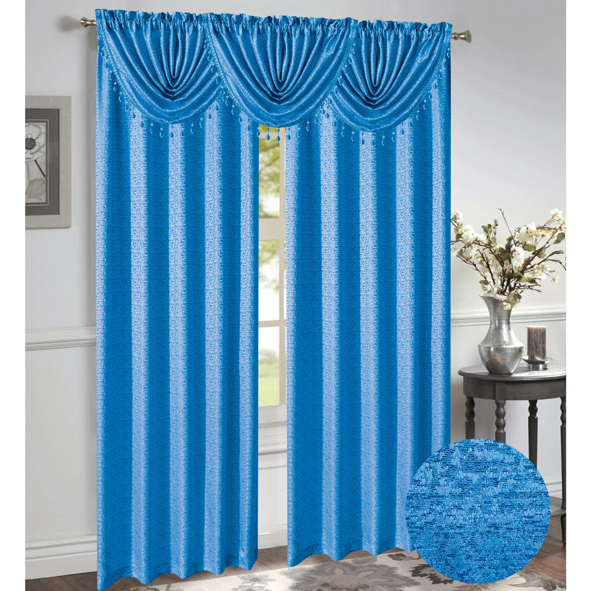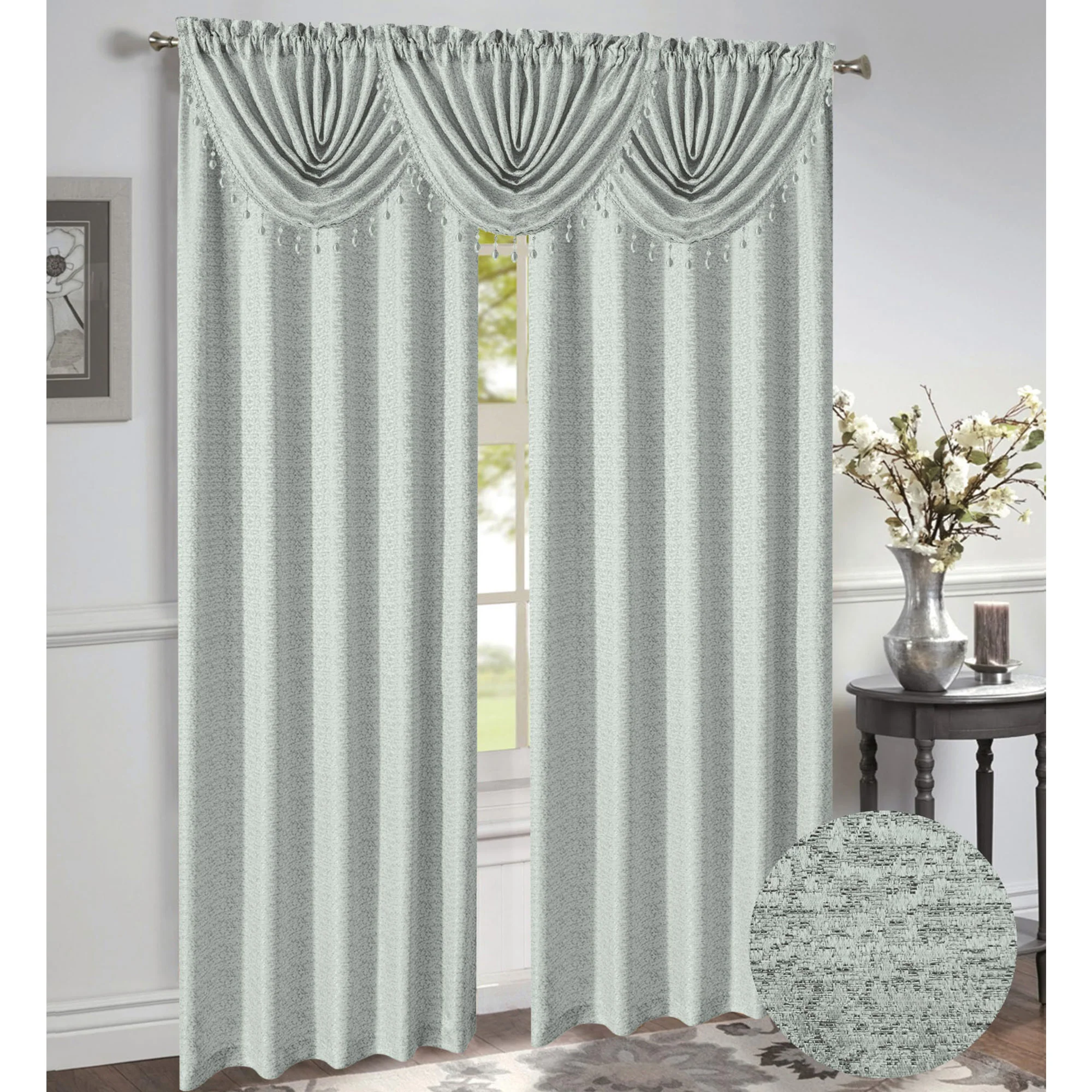 Embrace the shimmering elegance of the Norah Jacquard window treatments. Order your panels and valance (sold separately) today and let your windows shine!