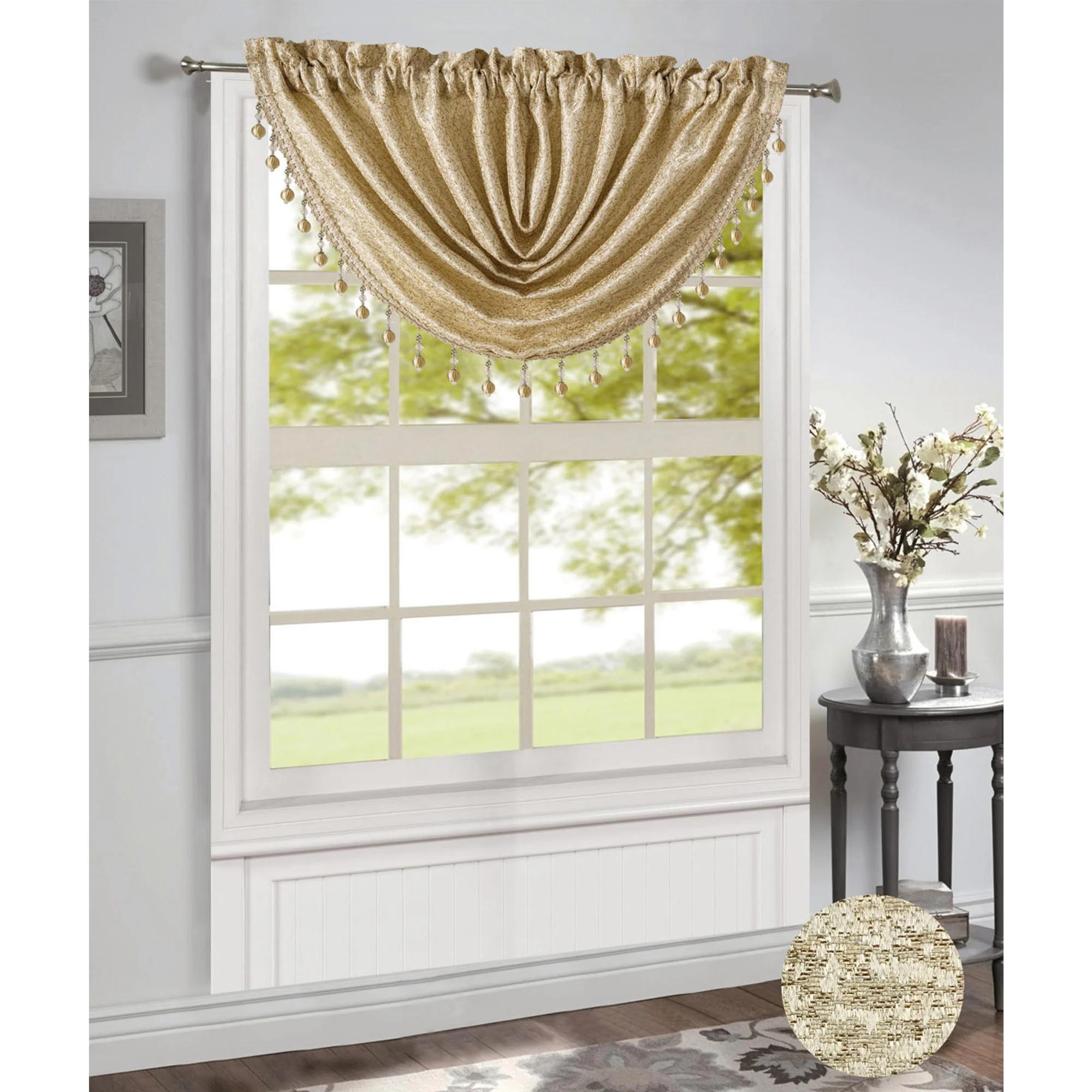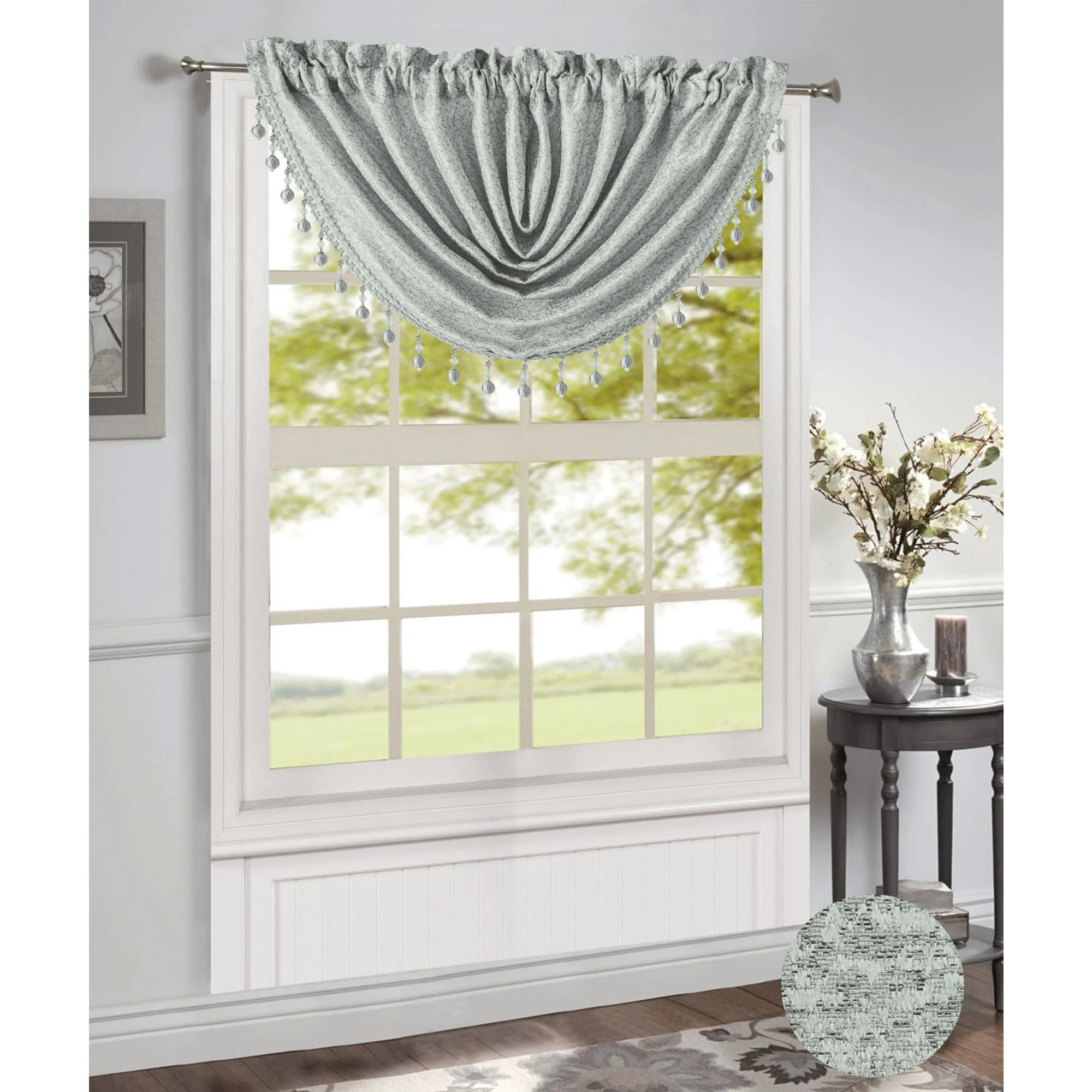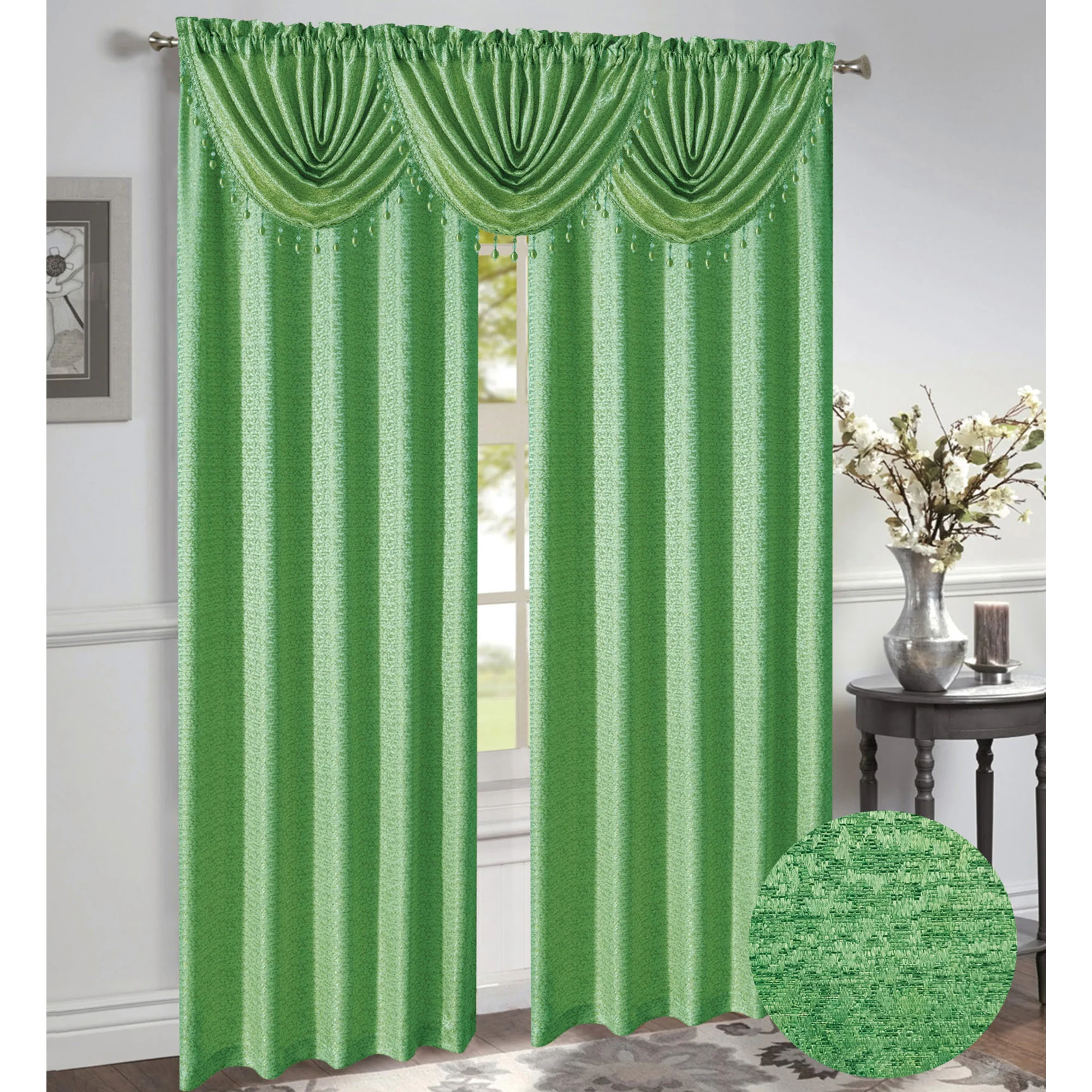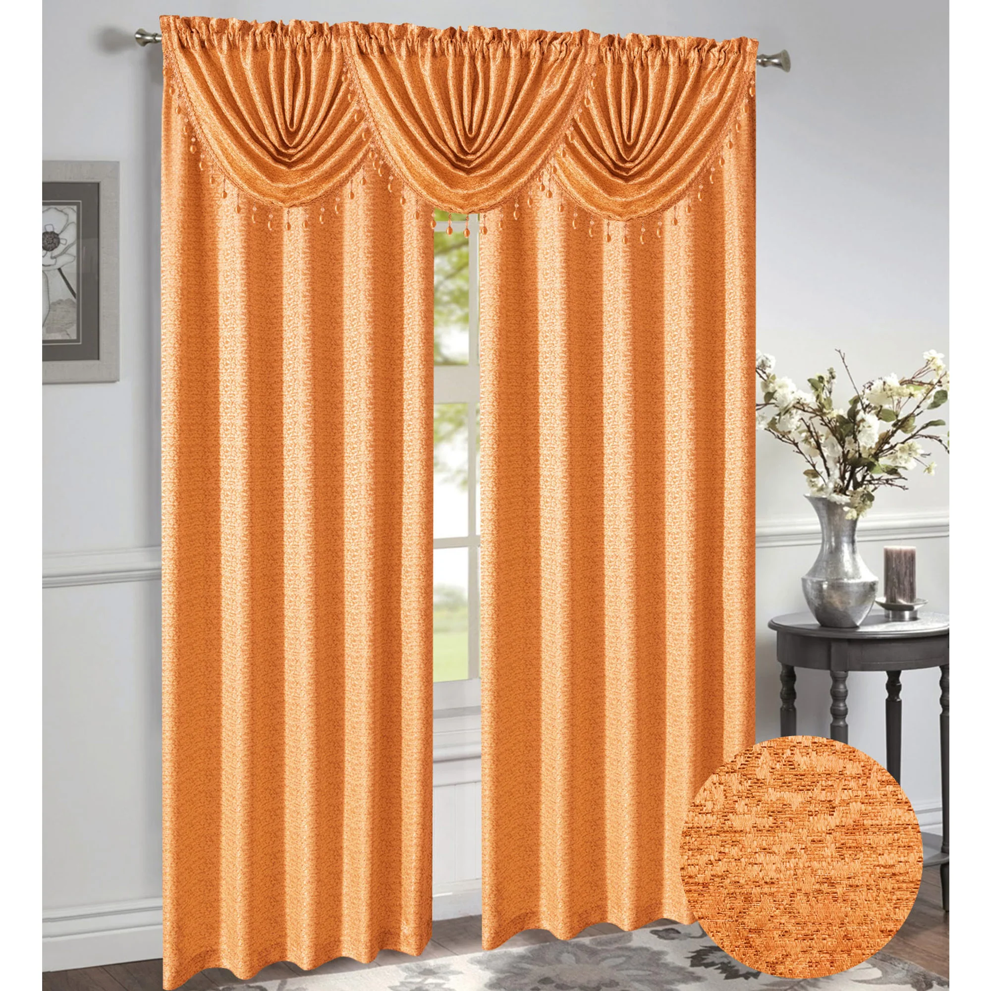 Embrace the shimmering elegance of the Norah Jacquard window treatments. Order your panels and valance (sold separately) today and let your windows shine!