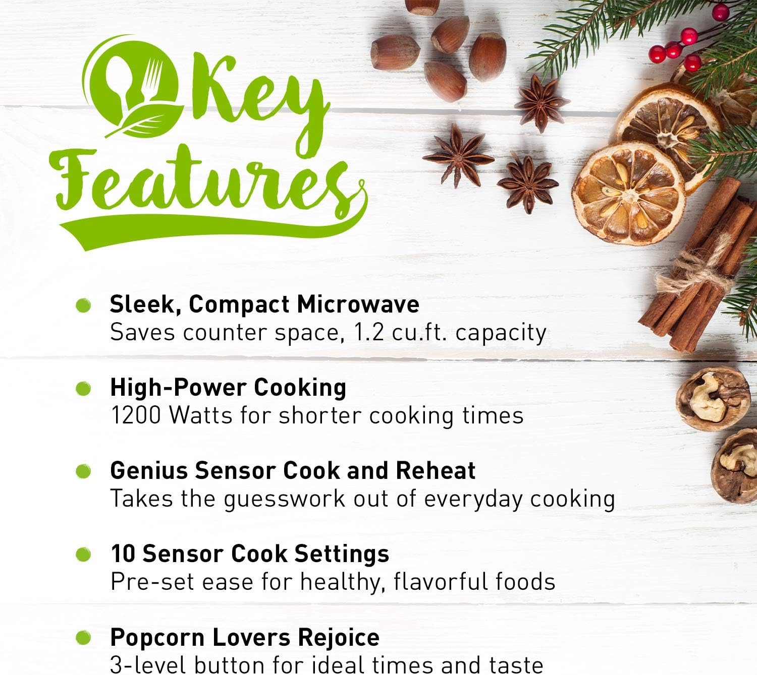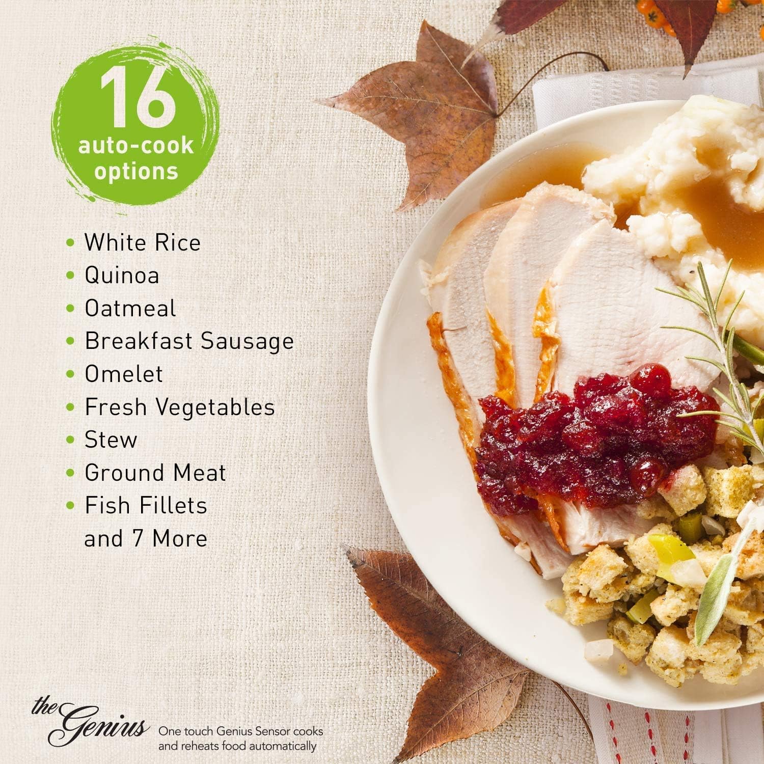 - Smart Cooking Settings with Genius Sensor: Built in automatic genius sensor adjusts power and times based on different foods; Other advantages include 14 preset menu items, quick minute timer, delay start and child safety lock