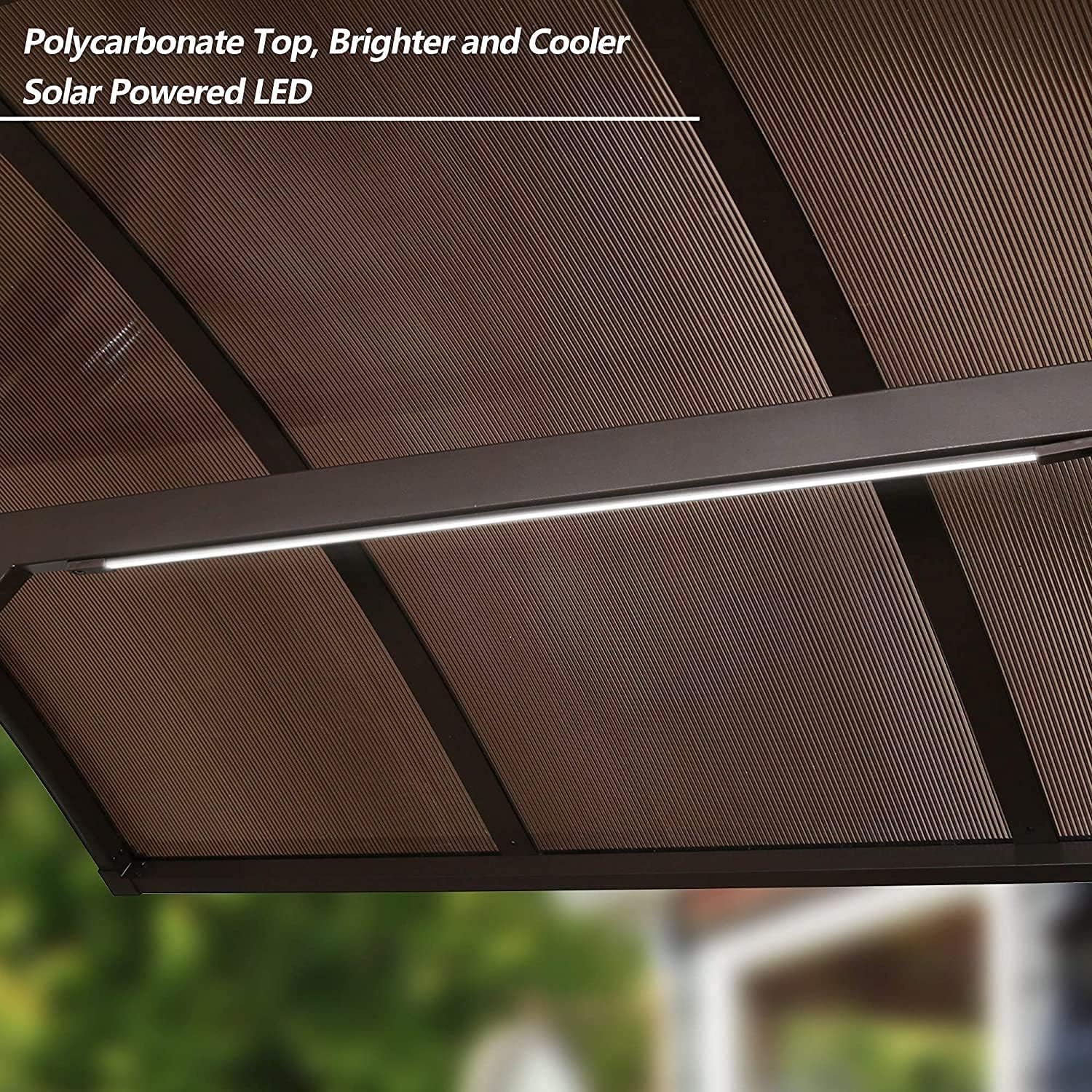 • 【Adjustable Canopy】Uniquely designed with an adjustable hardtop polycarbonate board canopy with sturdy rust-resistant aluminum frame, built to last and never becoming deformed. The all-weather hardtop canopy reduces heat and blocks 100% of harmful UV rays, strong enough to withhold heavy snow and offer unbeatable stability in windy conditions.