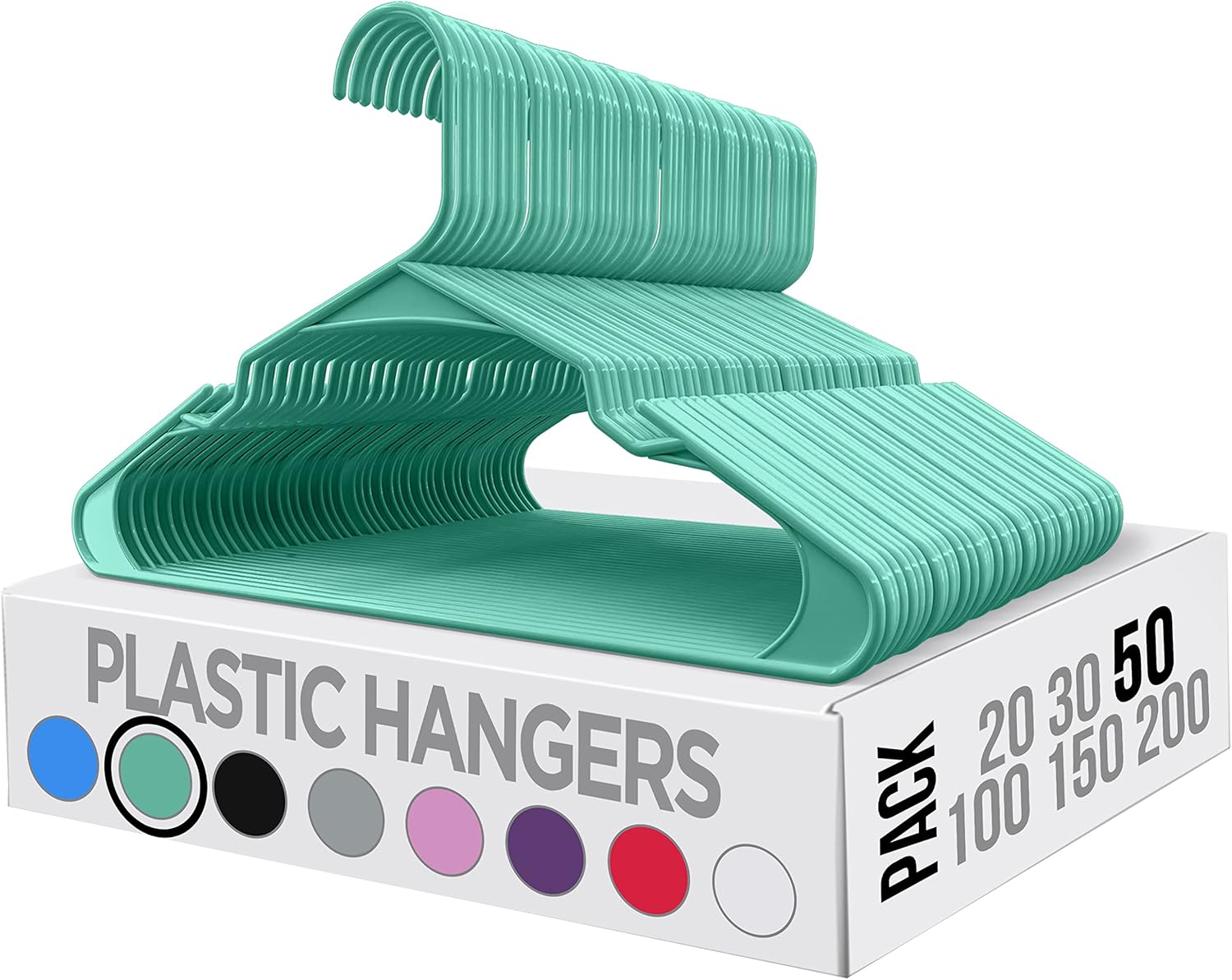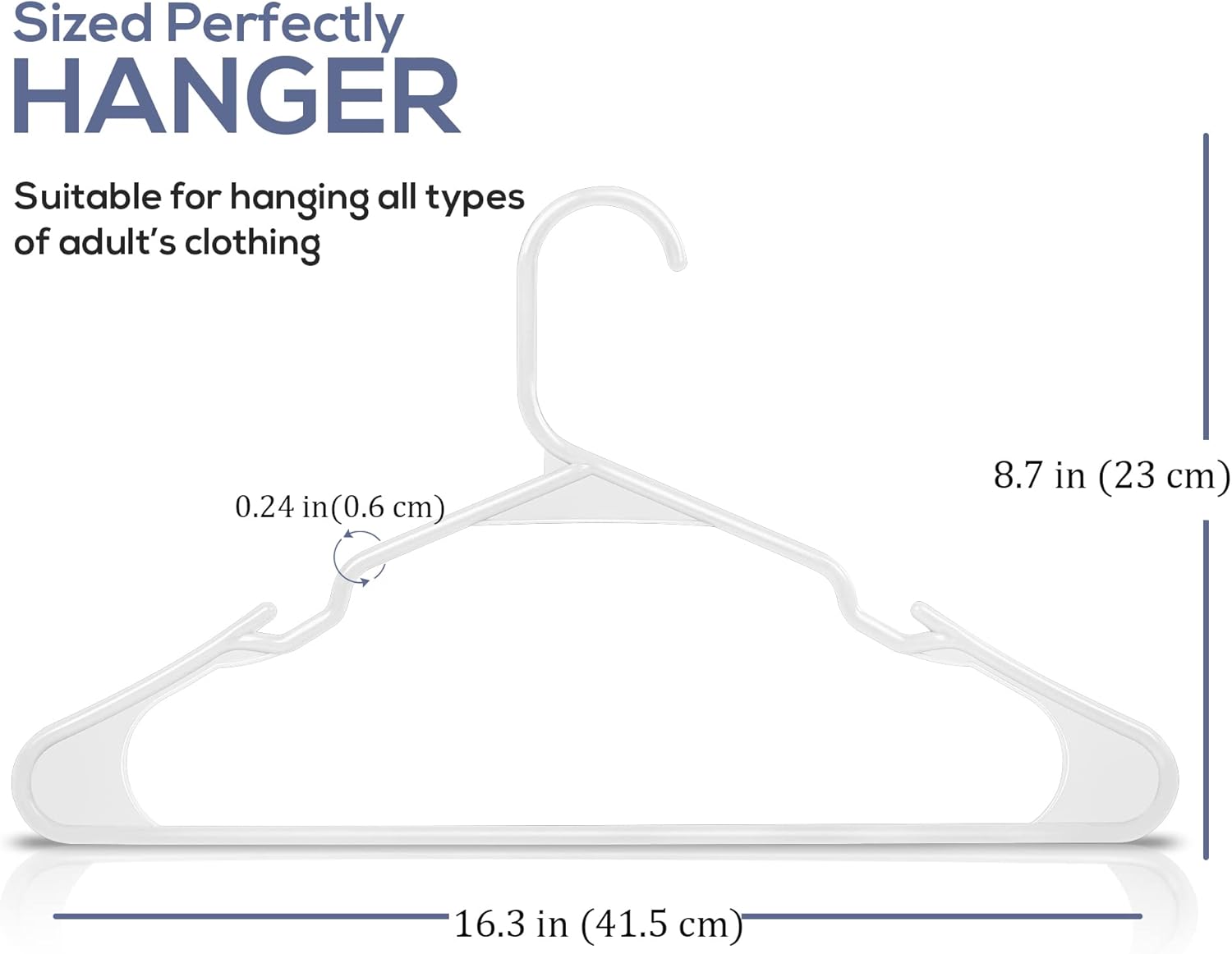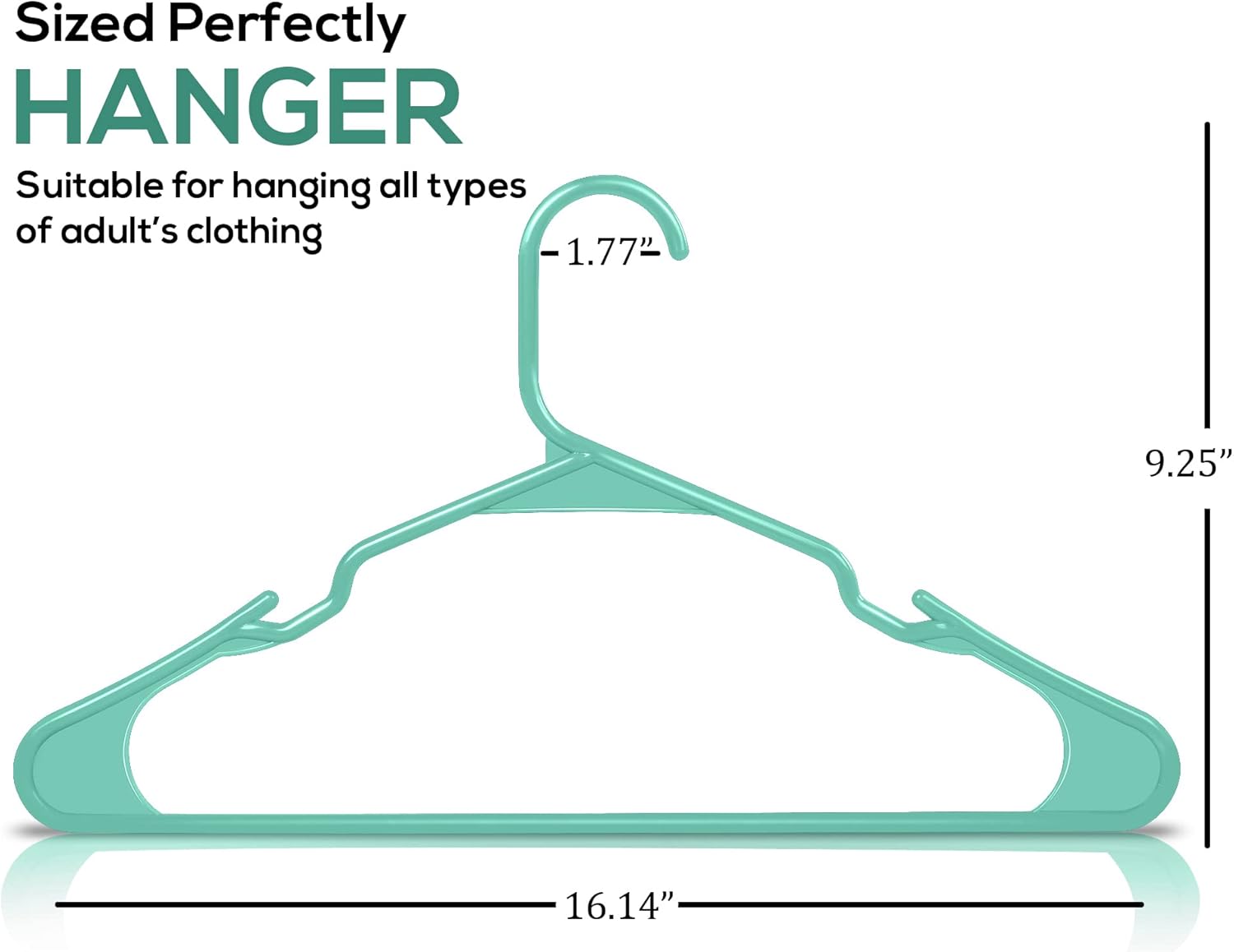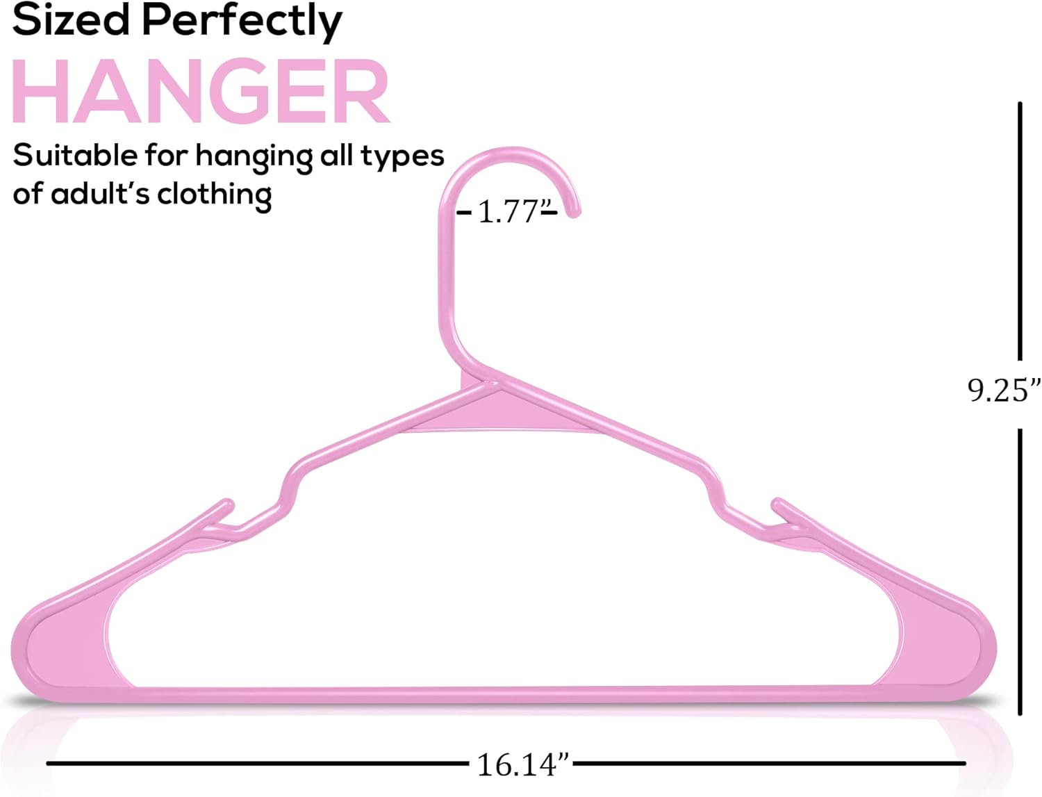 - Plastic Hangers 50 Pack - Pack of plastic hangers for closet organizers and storage with each hanger measuring 16.14 x 0.23 x 9.25 inches.