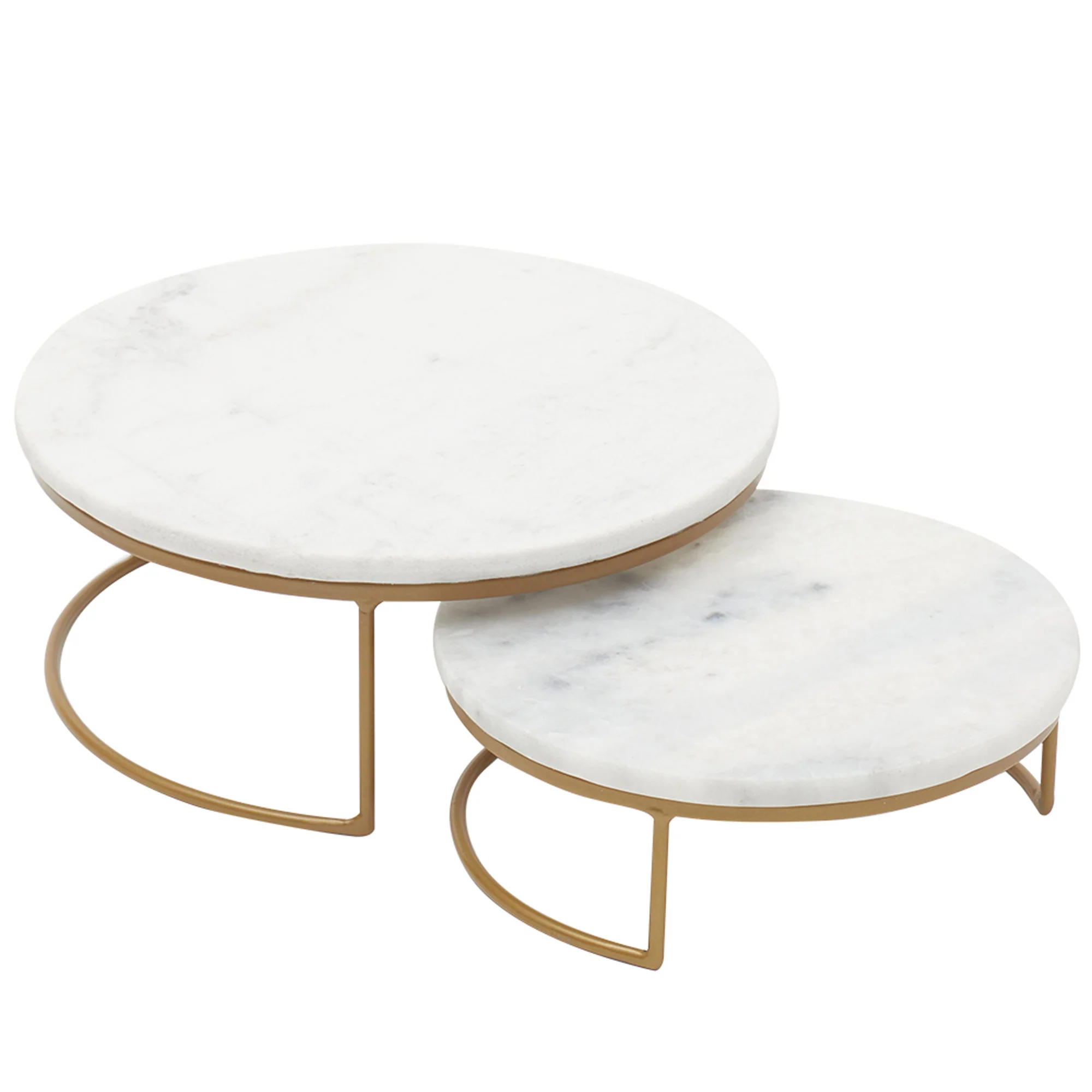 Sophia Grace 2 Pieces Marble Round Table Riser, White-Gold, 8x8x3 and 10x10x4 Inches