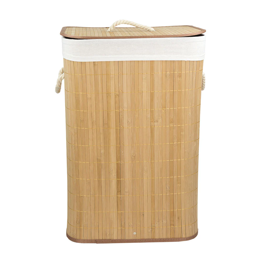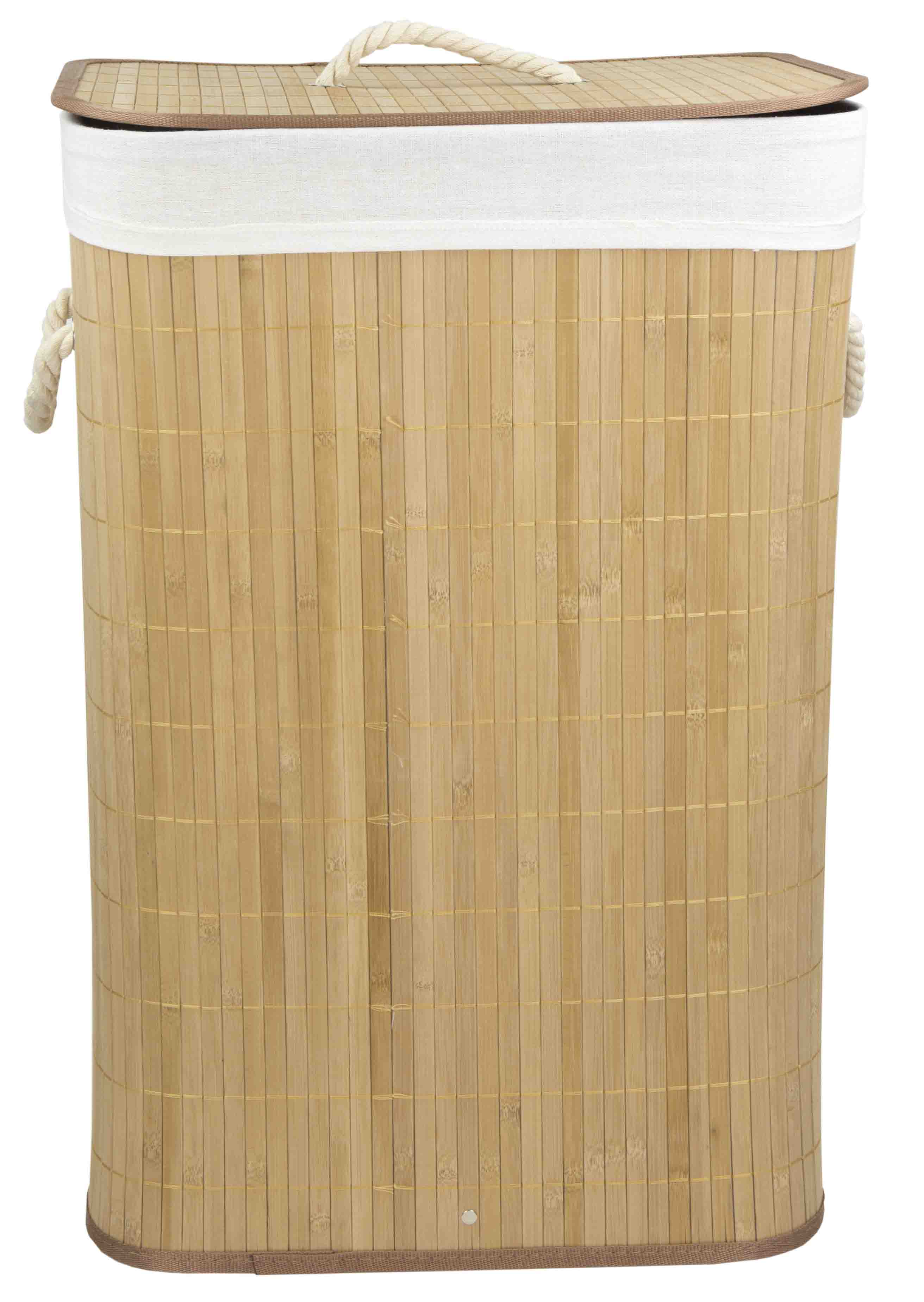 Home Basics Rectangular Bamboo Hamper, Natural, 16x12x23 Inches