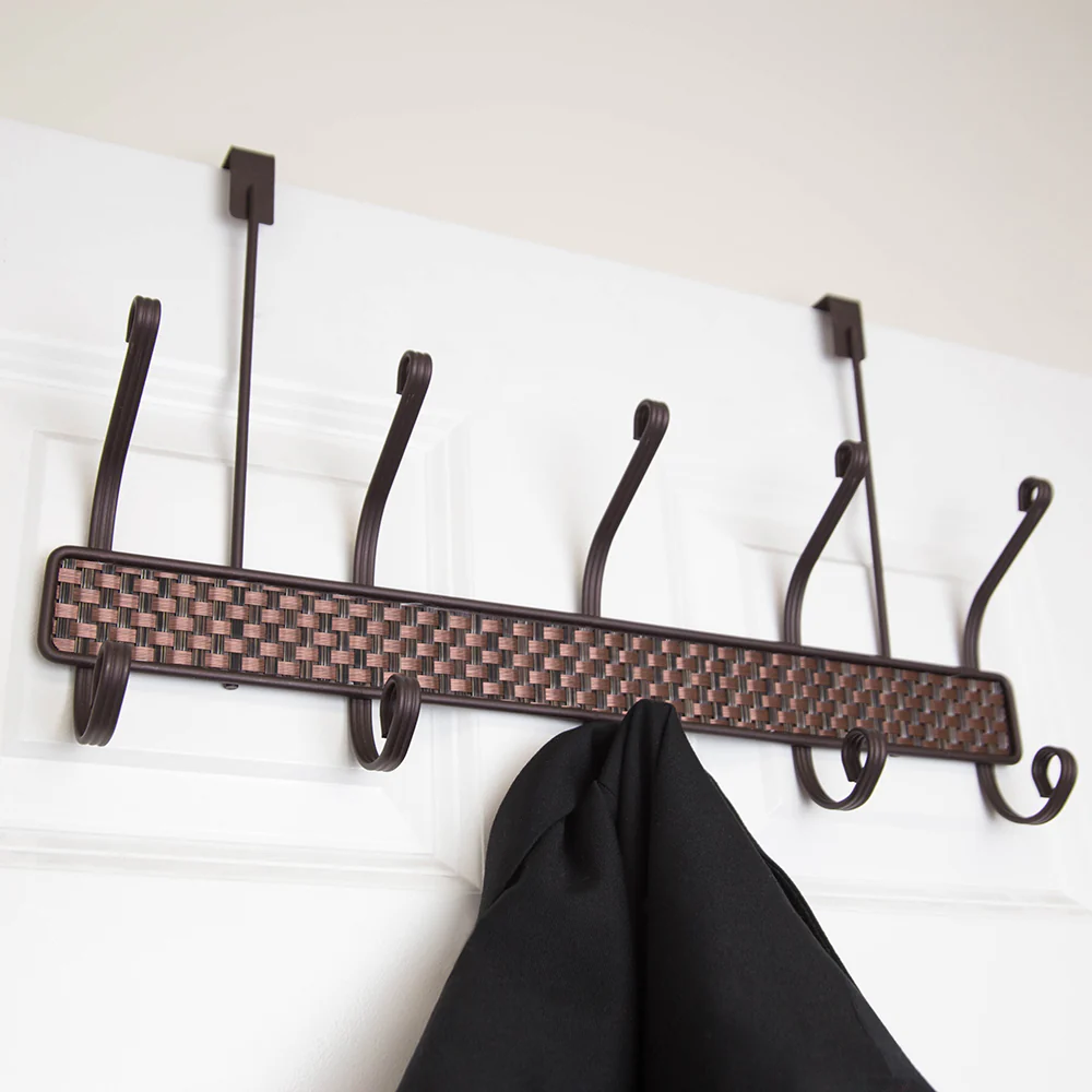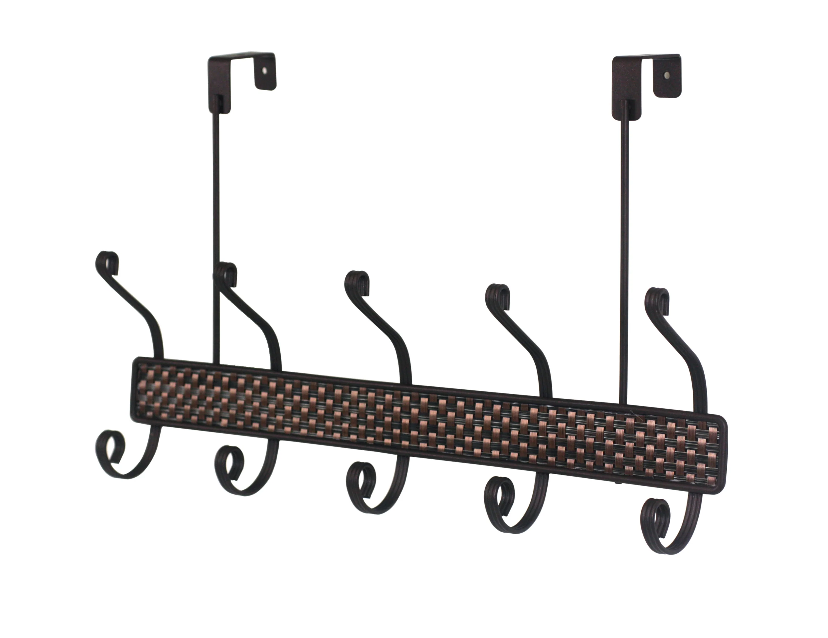 Home Basics Over the Door 5 Hook Hanging Coat Rack, Rust Resistant, Bronze, 18x11x5 Inches