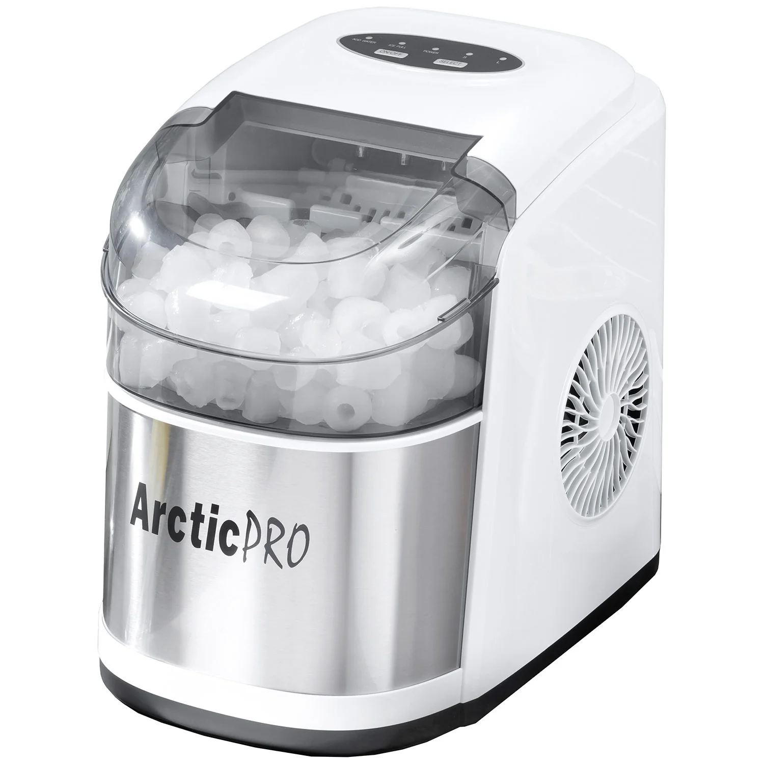 Arctic-Pro Easy Clean Flip-Top Lid Portable Ice Maker, White-Stainless Steel