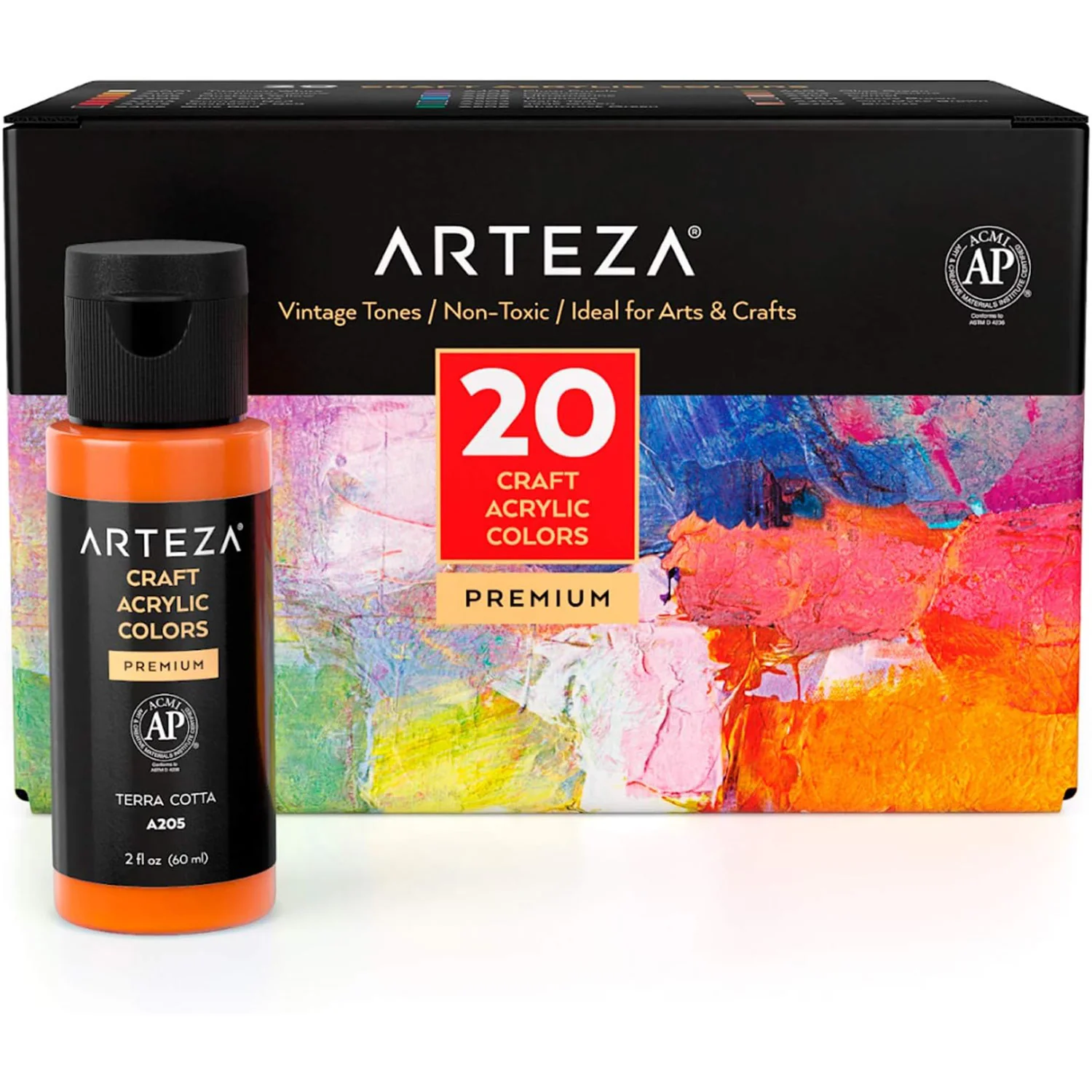 ARTEZA Premium Craft Acrylic Paint, Assorted Colors, 20 Count