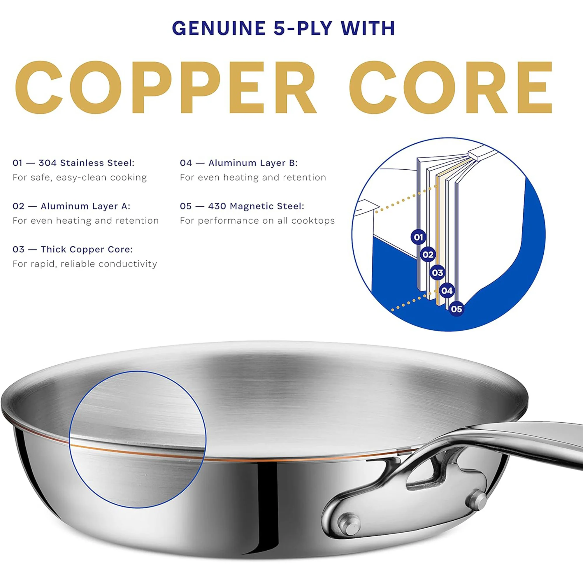 Legend 5 Ply Copper Core Frying Pan Stainless Steel Clad Skillet, 8 Inches