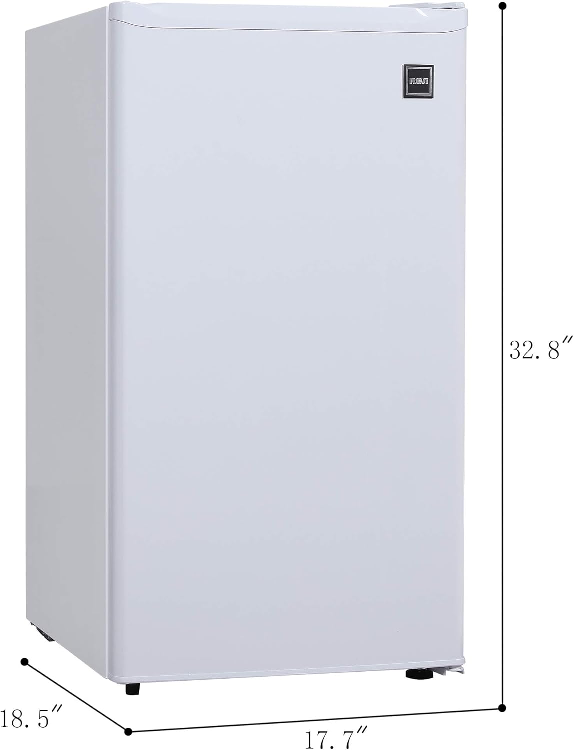 RCA RFR322 Mini Refrigerator, Compact Freezer Compartment, Adjustable Thermostat Control, Reversible Door, Ideal Fridge for Dorm, Office, Apartment, Platinum Stainless, 3.2 Cubic Feet
