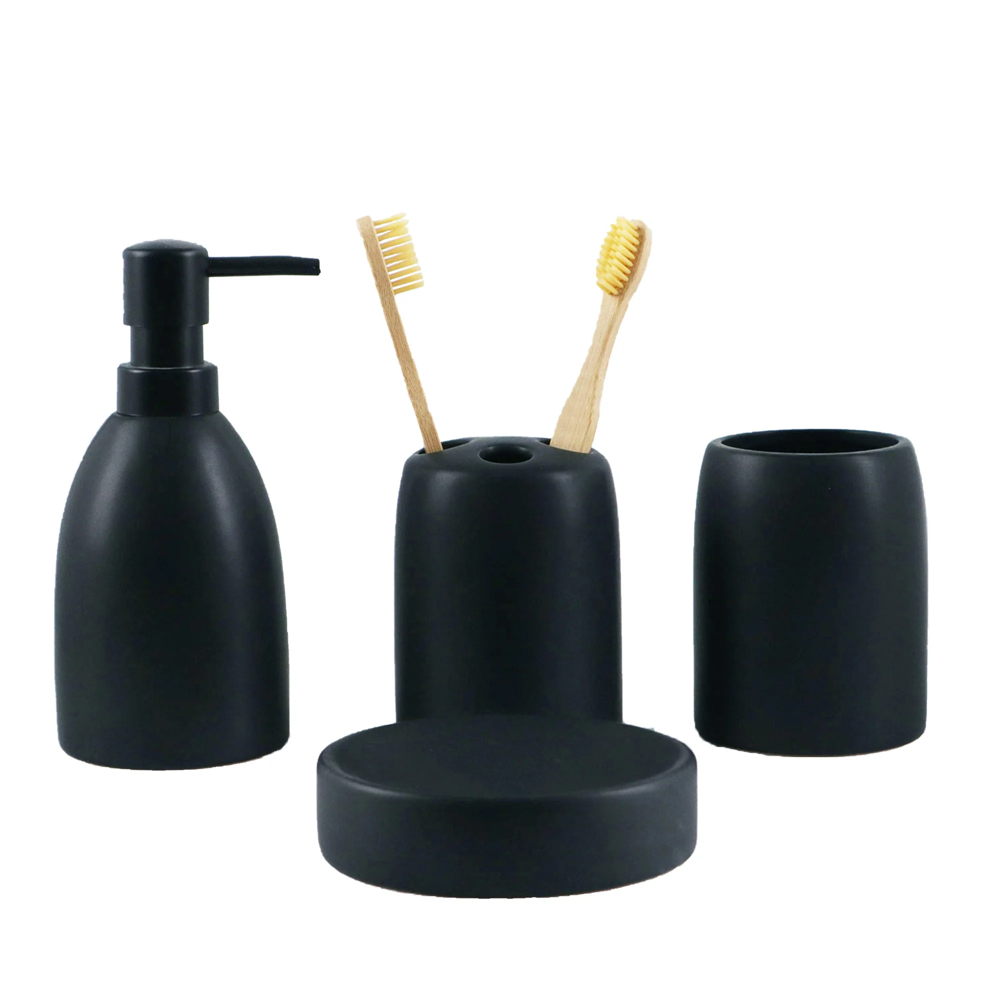 Home Basics 4 Pieces Ceramic Bathroom Set, Matte Black Obsidian