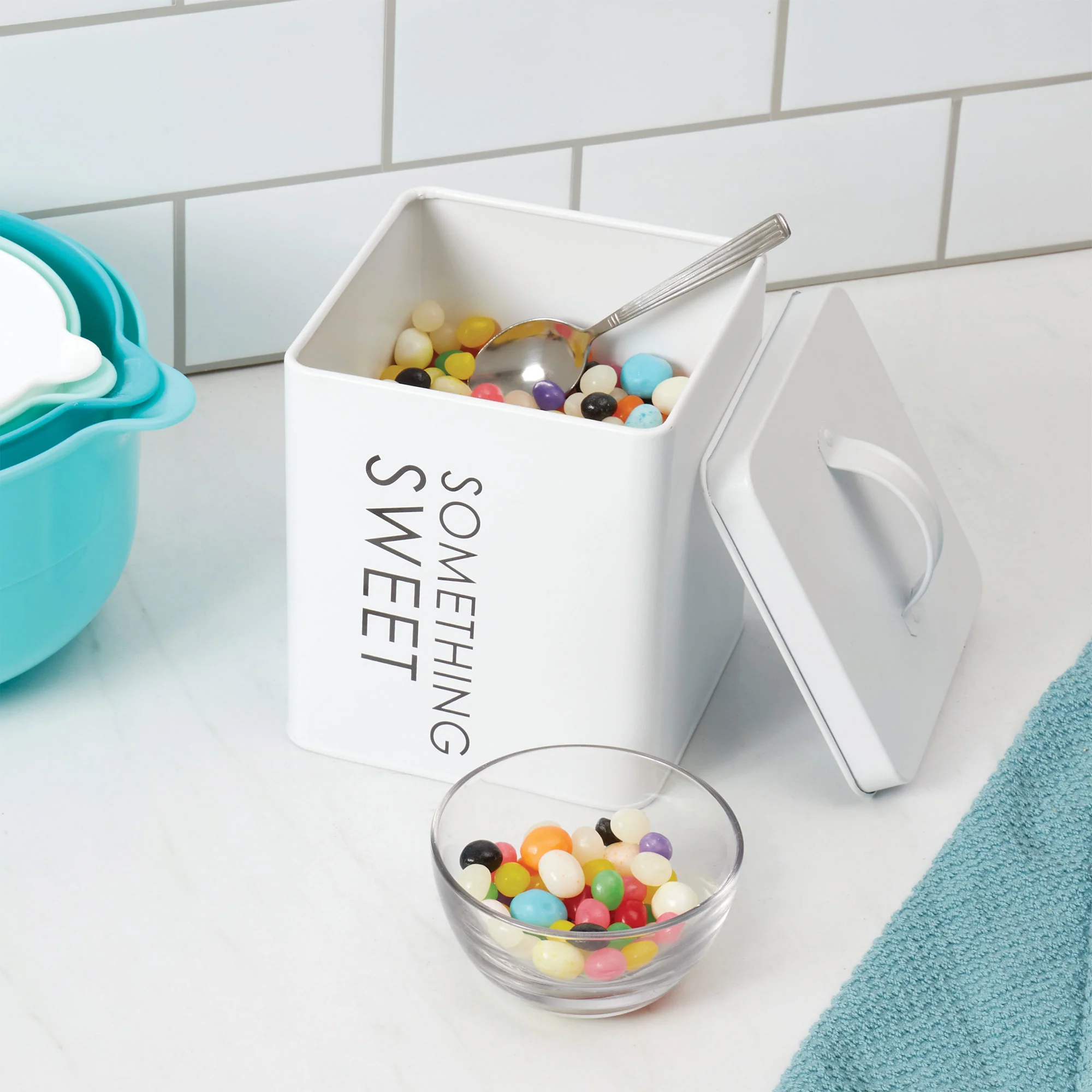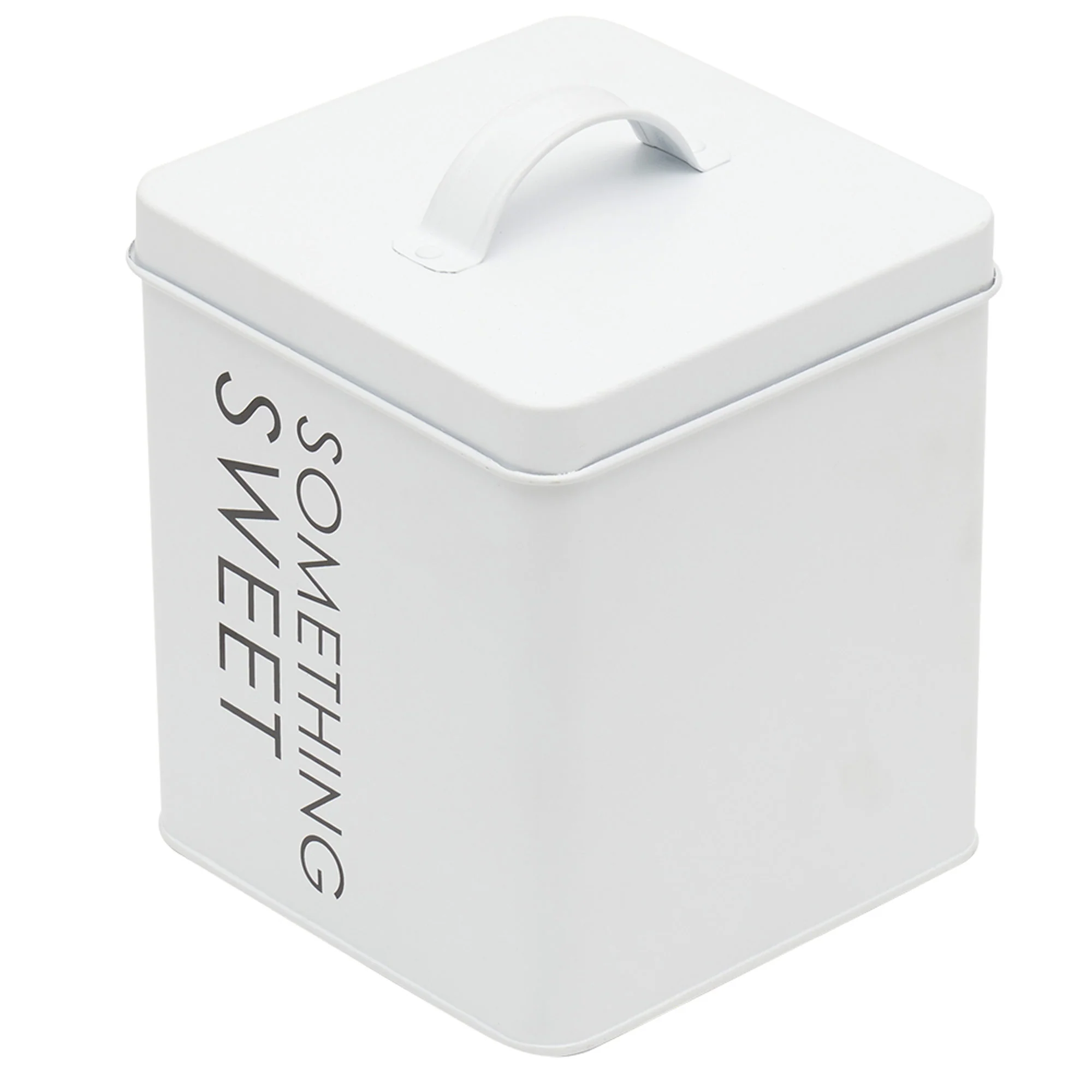 Home Basics Tin Canister, Something Sweet, Large, White, 5.5x5.5x6.5 Inches