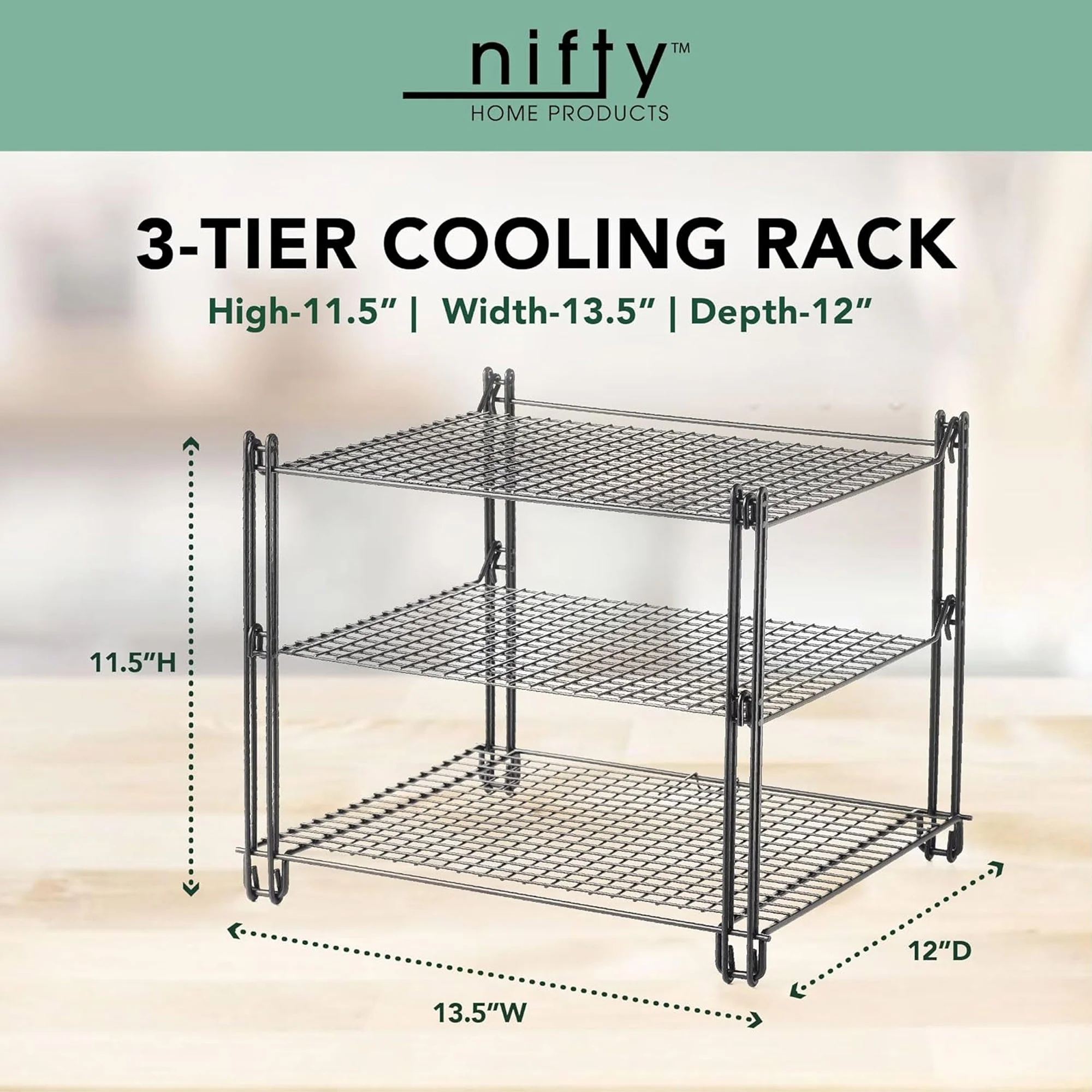 Nifty 3-Tier Non-Stick Coating Wired Cooling Rack Organizer, Black, 13.5x12x11.5 Inches