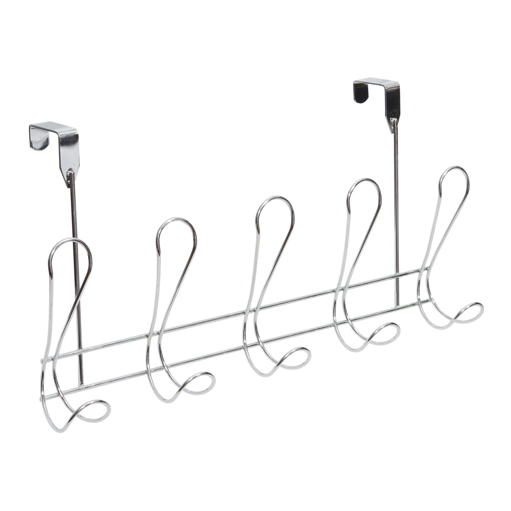 Home Basics 5 Hook Over The Door Hanging Rack, Chrome, 29.3x3.15x9.8 Inches