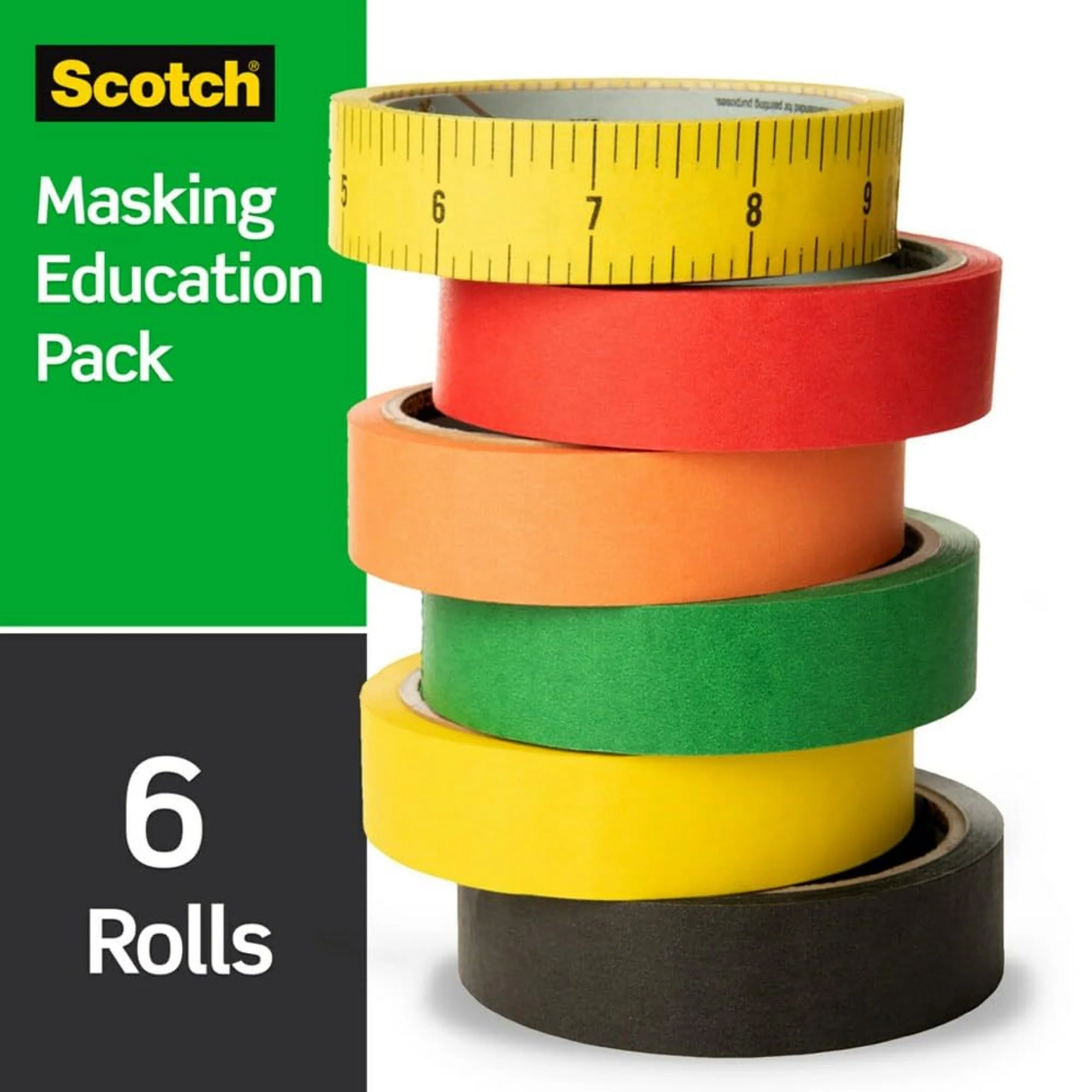 3M Scotch Colored Masking Tape, 6 Rolls, Great for Teacher Gifts, Teacher Supplies and School Supplies