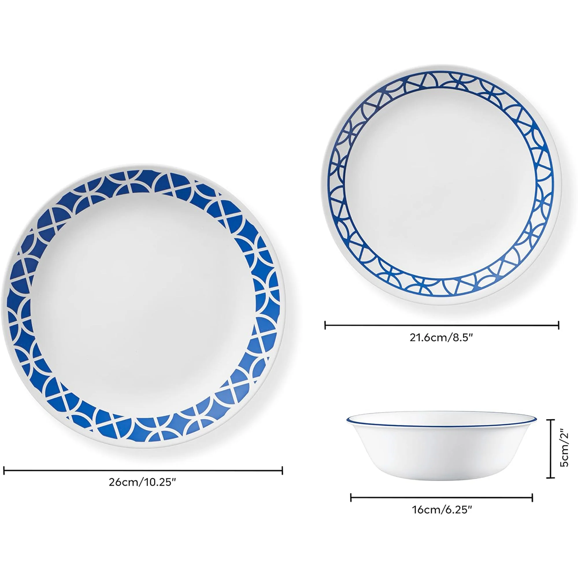 Corelle Vitrelle 12-Piece Glass Dinnerware Set Service for 4, Cobalt Circles
