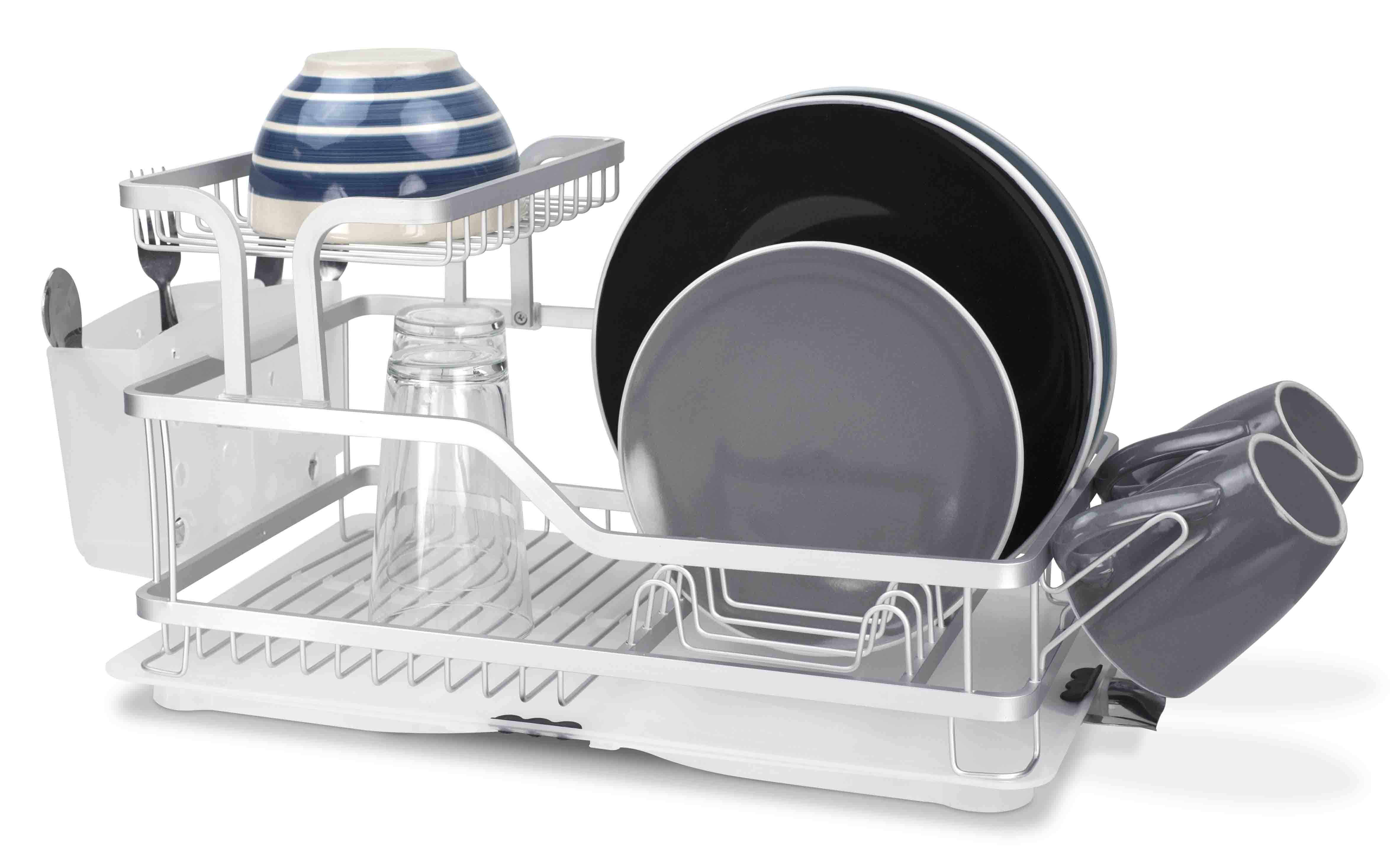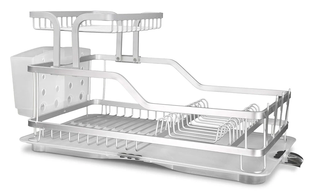 Home Basics Rust-Proof Aluminum 2-Tier Dish Rack, 23.5x13.75x10.75 Inches
