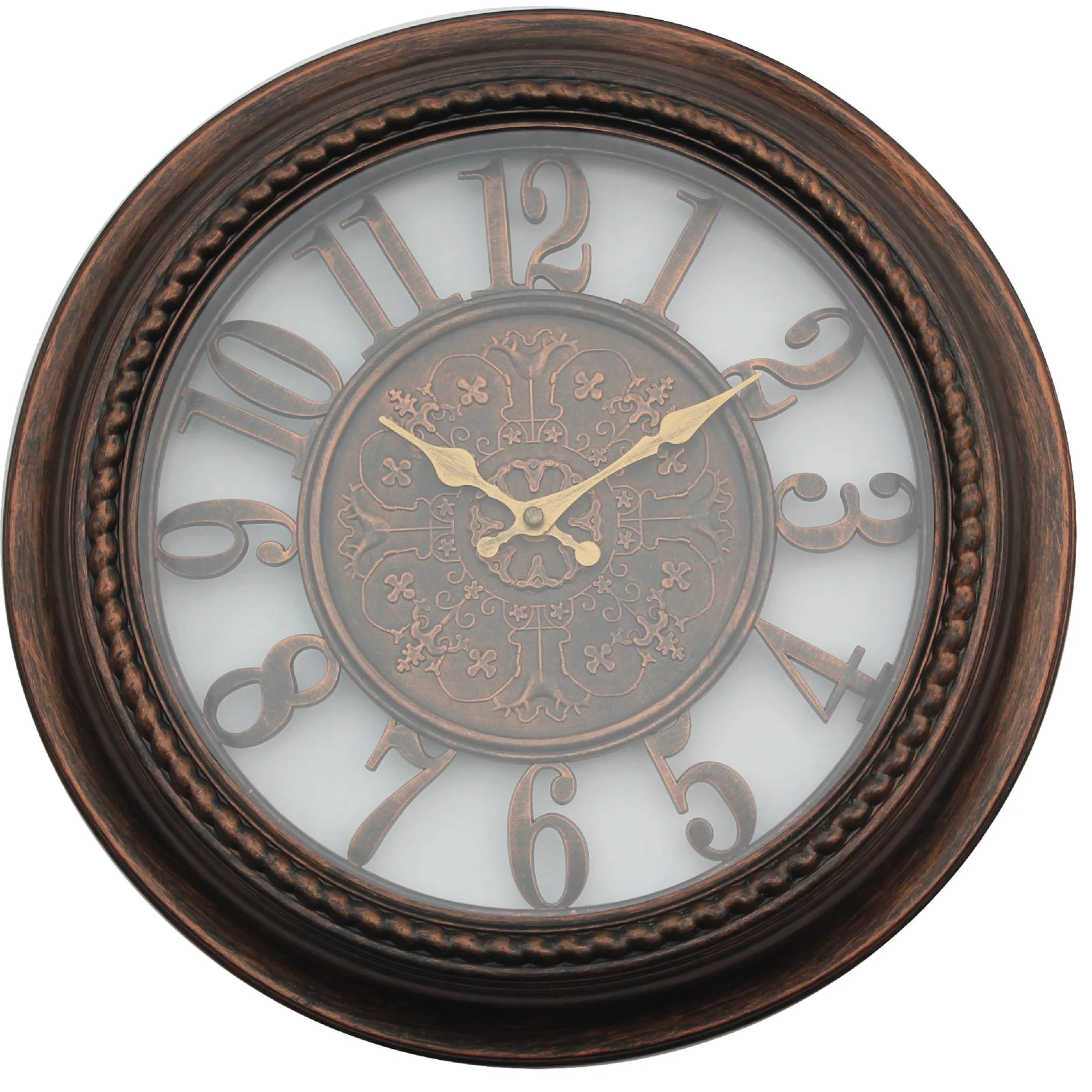 PREMIUS Industrial Digits Round Roped Wall Clock, Bronze, 15 Inches