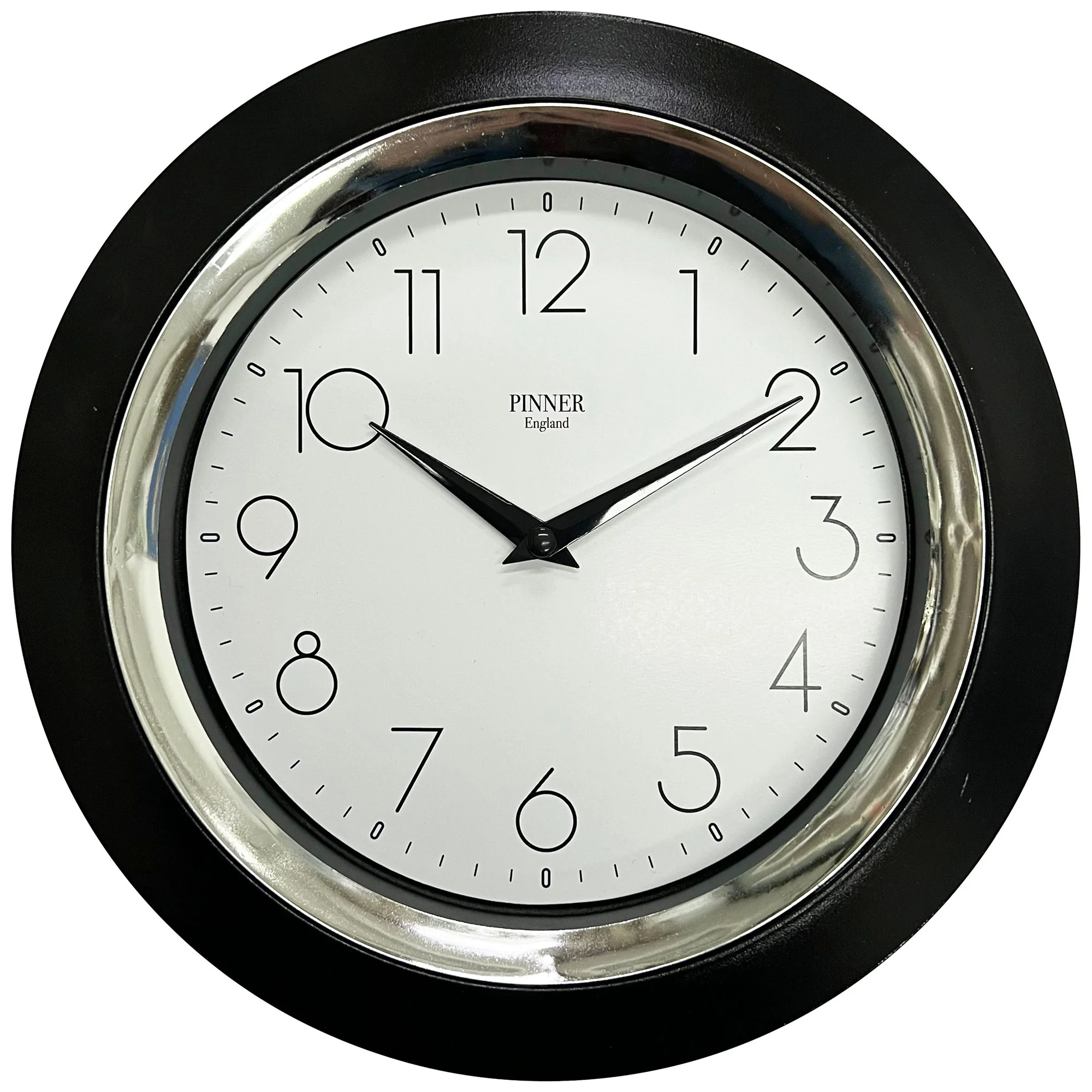PREMIUS Round Electroplated Analog Wall Clock, Silver, 12 Inches