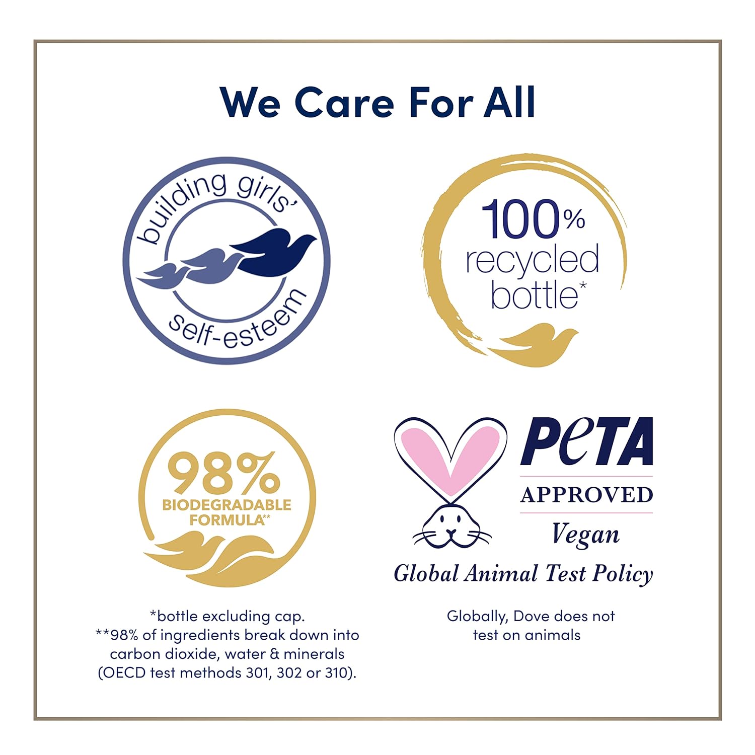 • THOUGHTFULLY MADE: This sulfate-free body wash is vegan and Dove is PETA approved, meaning we do not test on animals, anywhere in the world. Our body wash is packaged in 100% recycled plastic bottles, so you can feel good about switching to Dove