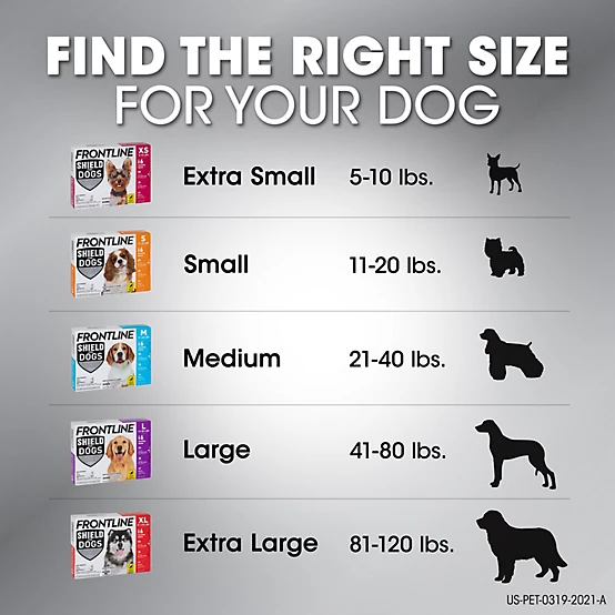 • Frontline Shield Flea and Tick Prevention for Dogs 21-40 lb., 6 ct.