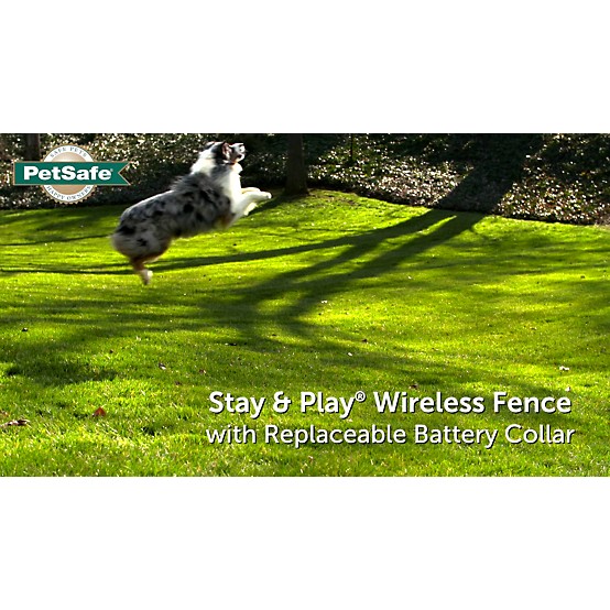 The PetSafe Stay & Play Wireless Fence with Replaceable Battery Collar covers a circular area up to 3/4 ac. with no trenches to dig or wires to bury at a fraction of the cost of a traditional physical fence. The fence transmitter is portable for RVs, cabins, and rental houses. Just plug the transmitter into a standard outlet near the area where you want to contain your pet. The transmitter communicates with your pet's waterproof receiver collar and helps keep him in the designated area. The receiver collar is ergonomically designed for comfort and sized for pets weighing 5 lb. or more. Choose from 5 adjustable levels of static correction to find just the right level for your pet, plus tone only mode which warns your pet with a beep. With just a few short training sessions, you'll create a secure boundary for your pet to enjoy freedom and fun! Your pet deserves the best. Trust PetSafe to keep your pet healthy, safe and happy.
