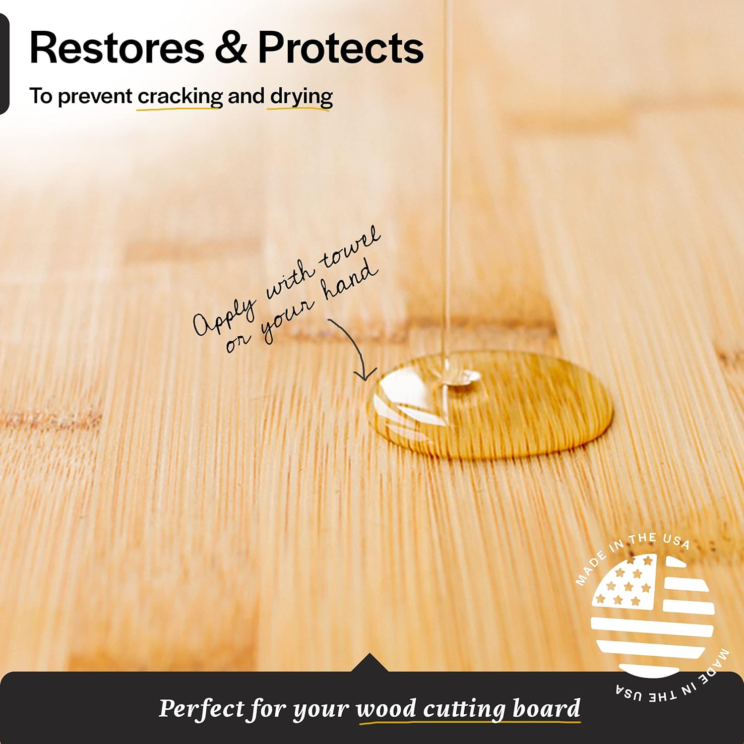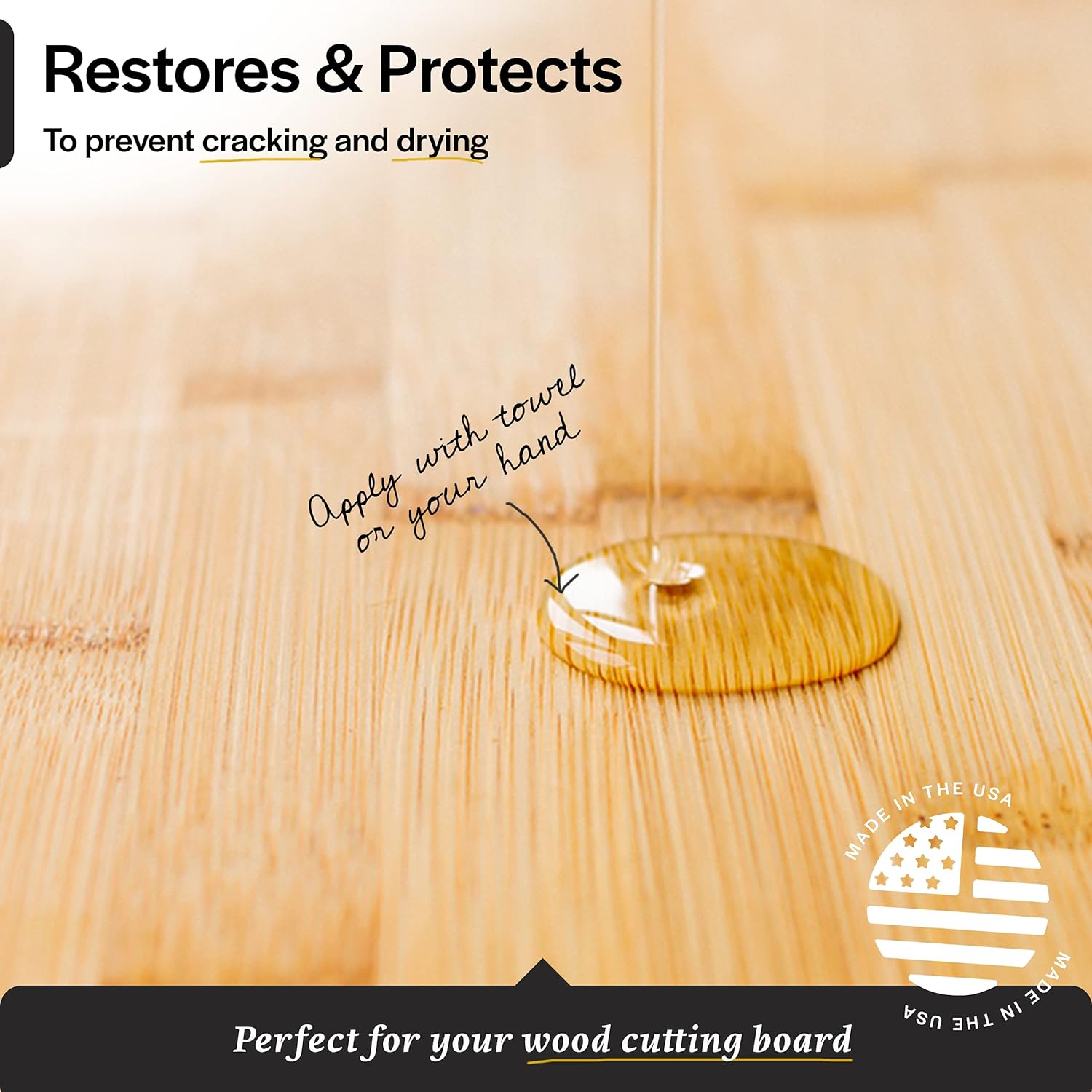 - PROTECTION - Use this mineral oil for cutting board restoration and protection to prevent cracking and drying. It also magically restores your knives, kitchen appliances, and more!
